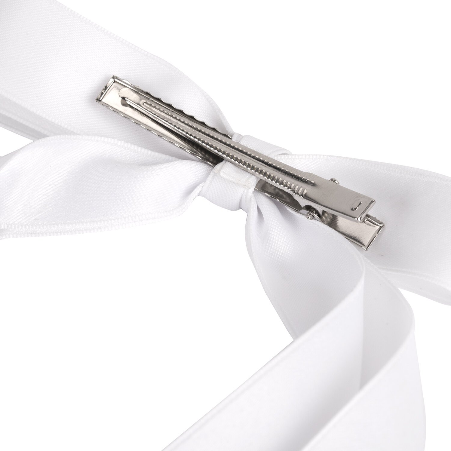 Белая заколка-аллигатор с атласным бантом и хвостиками — элегантное решение для свадеб, выпускных и романтических образов. Увеличенный размер (15?26 см) создает объем, а прочный зажим фиксирует даже густые волосы без повреждений.