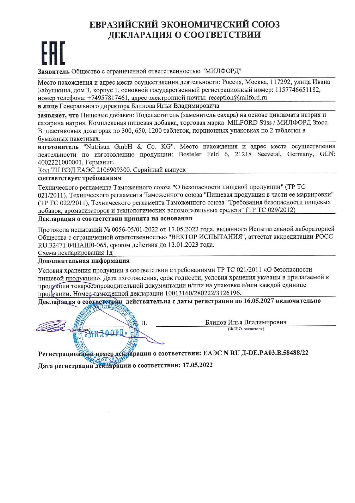 Сахарозаменитель MILFORD на основе цикламата и сахарина используется при диетическом питании, сахарном диабете. Это продукт немецкого производства, изготавливаемый компанией NUTRISUN GmbH& Co.KG - лидером рынка сахарозаменителей.