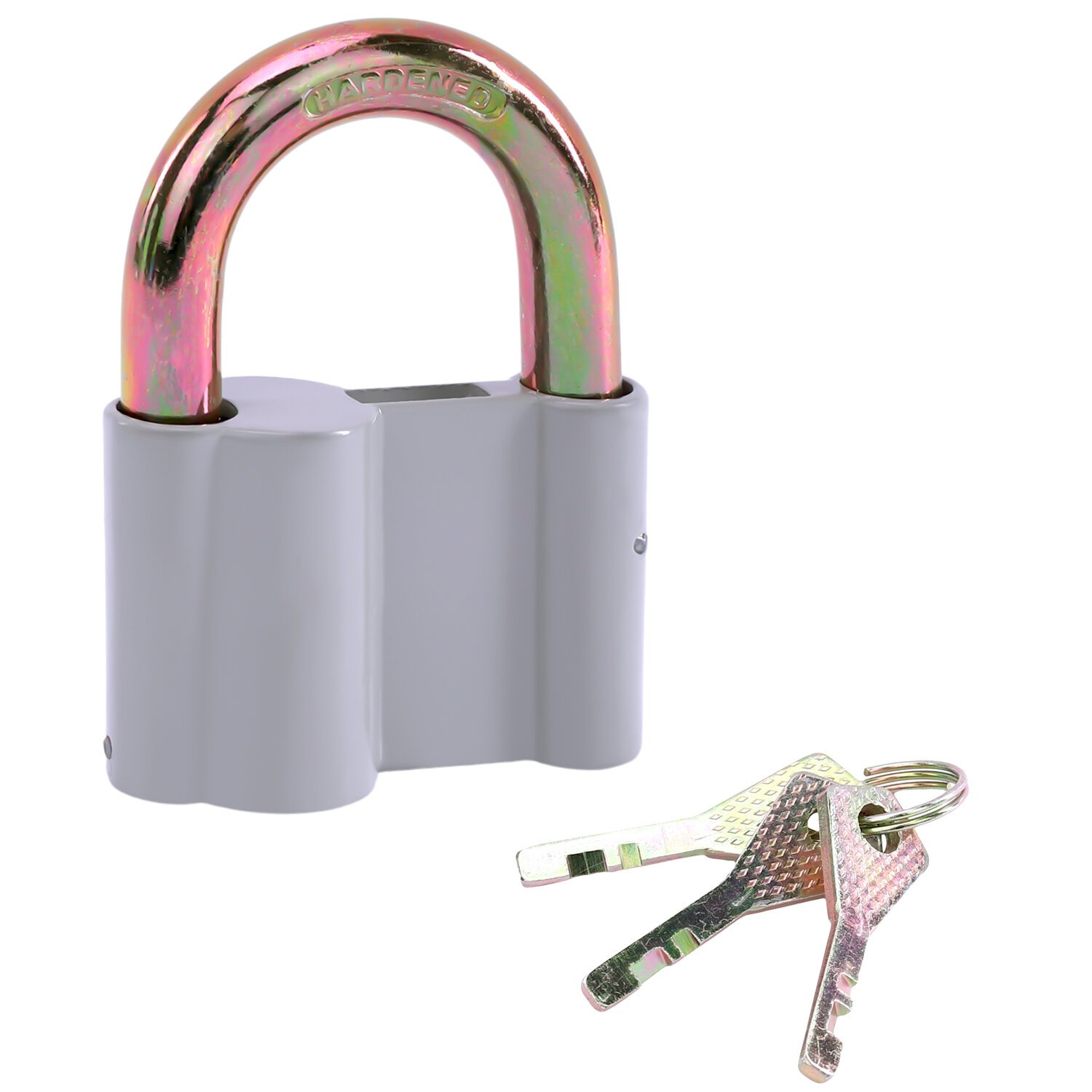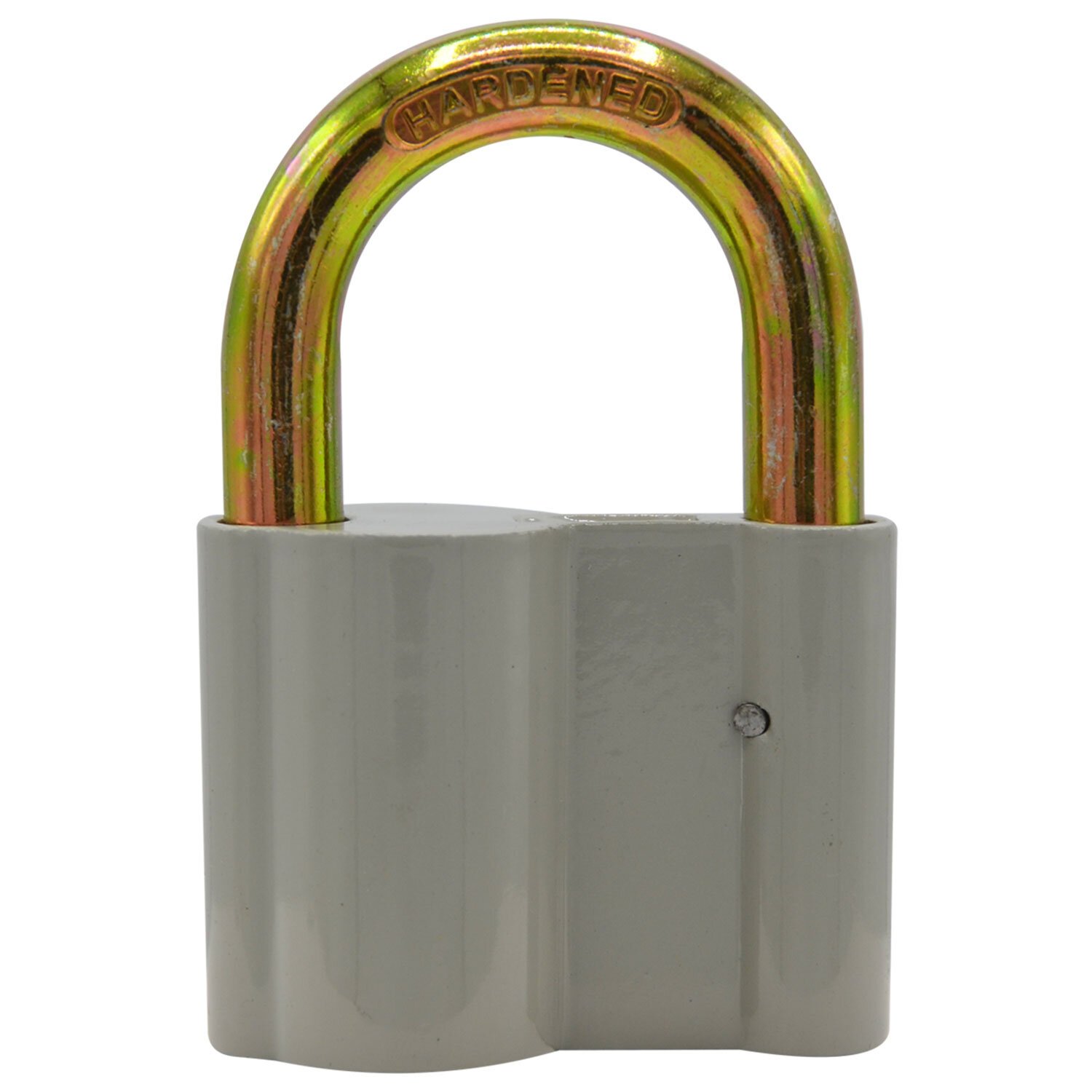 Замок навесной алюминиевый цилиндрический с удлиненной дужкой и пластиковым покрытием, ширина 60 мм, 3 ключа, RABBITEX (РАББИТЕКС), 671308