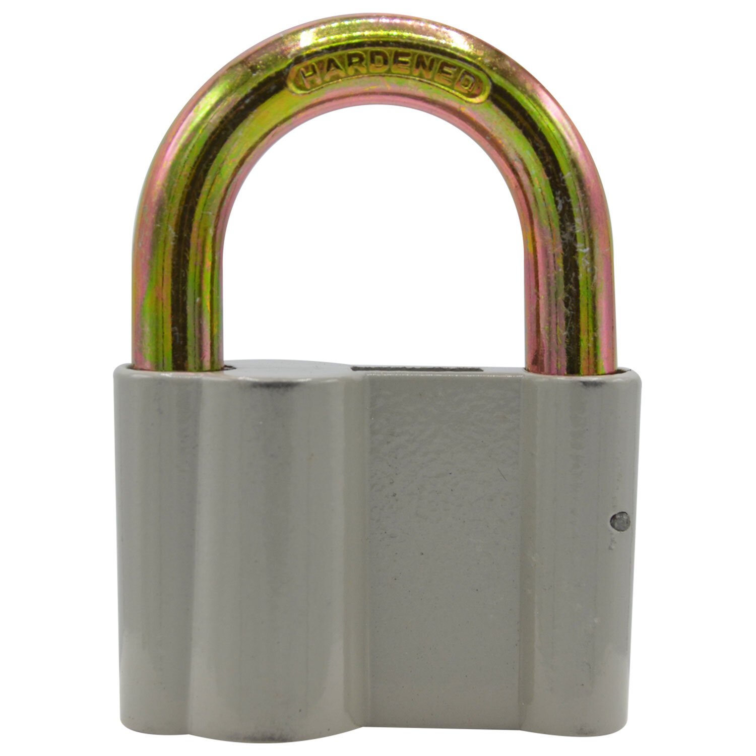 Замок навесной алюминиевый цилиндрический с удлиненной дужкой и пластиковым покрытием, ширина 60 мм, 3 ключа, RABBITEX (РАББИТЕКС), 671308