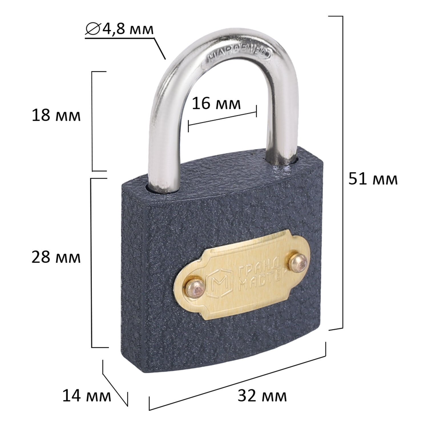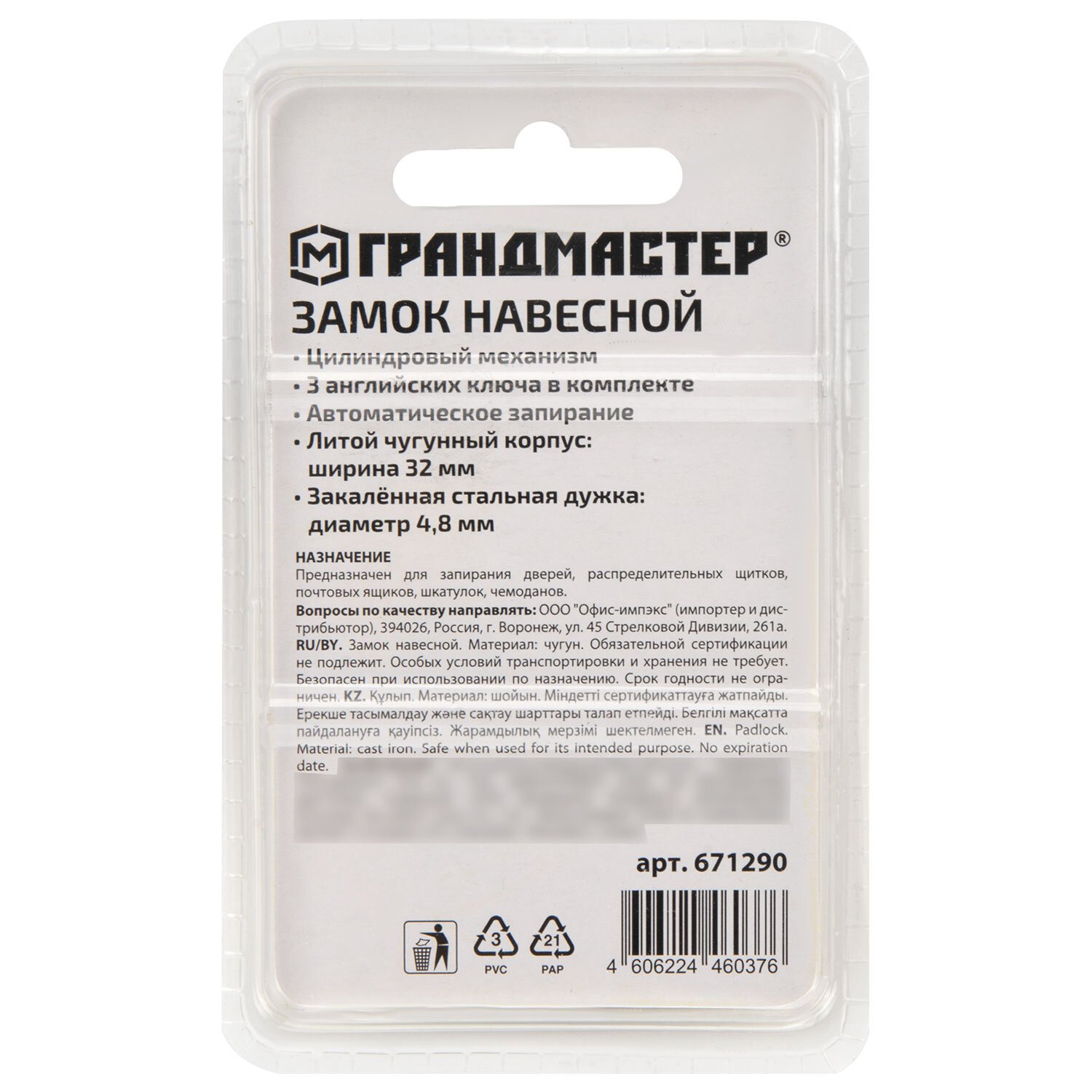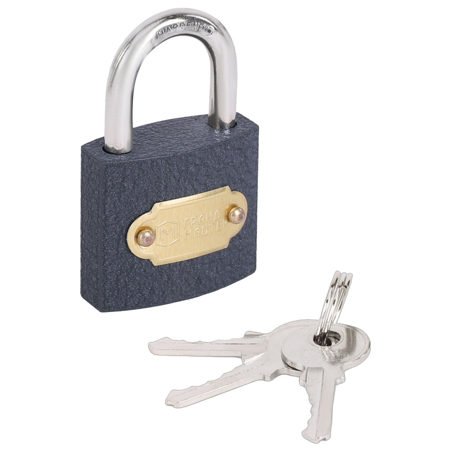 Замок навесной чугунный "Стандарт", ширина 32 мм, английский, 3 ключа, ГРАНДМАСТЕР, 671290