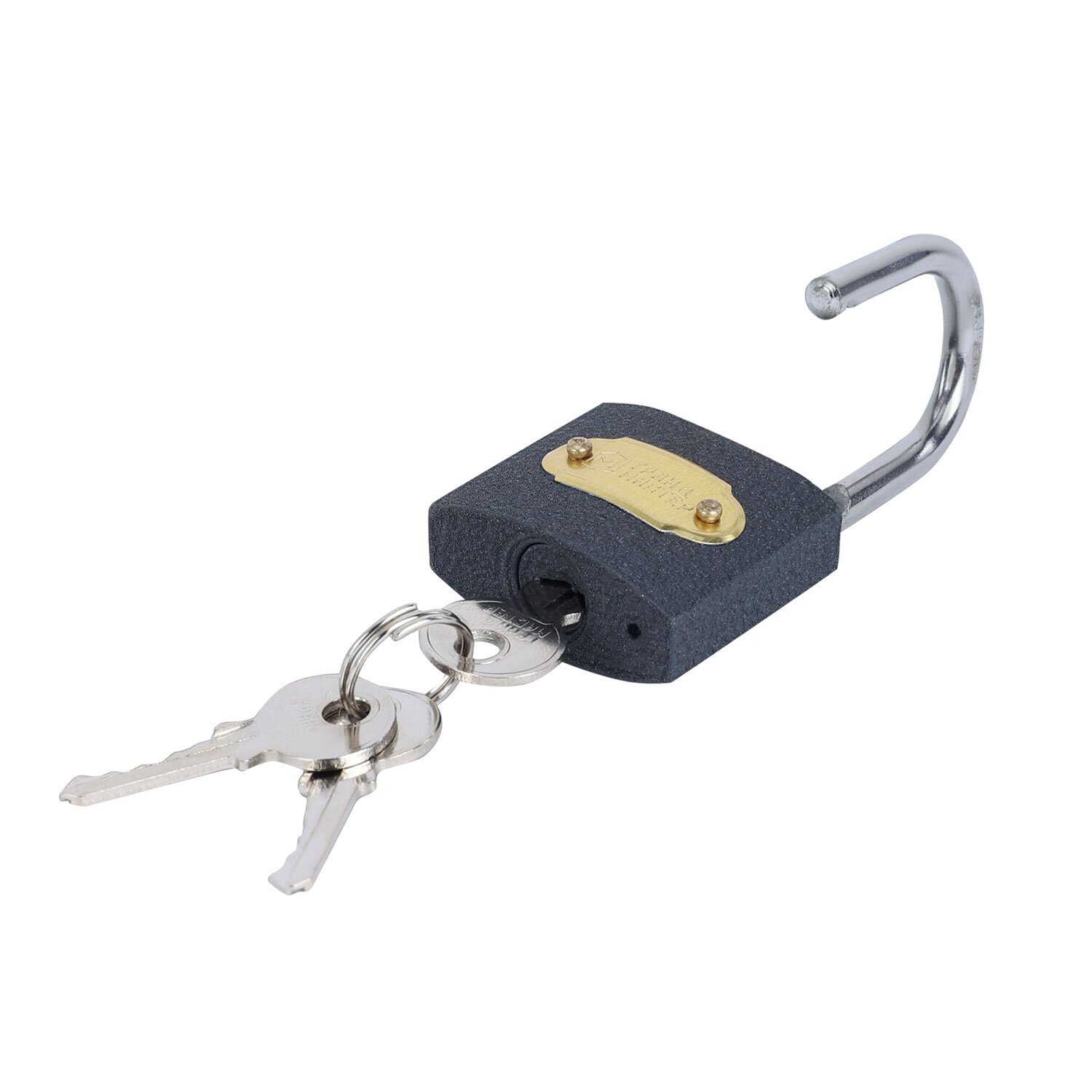 Замок навесной имеет литой чугунный корпус и оснащен полукруглой дужкой из закаленной стали, что делает его прочным и увеличивает сопротивляемость к взлому. Тип механизма секретности - цилиндровый. Три английских ключа в комплекте. Замок запирается автоматически (без использования ключа) при нажатии на дужку сверху, что облегчает его эксплуатацию. Небольшие размеры замка и толщина дужки позволяют использовать его в качестве замка для чемоданов, дорожных сумок, ящиков, шкафов, почтовых ящиков и распределительных щитков.