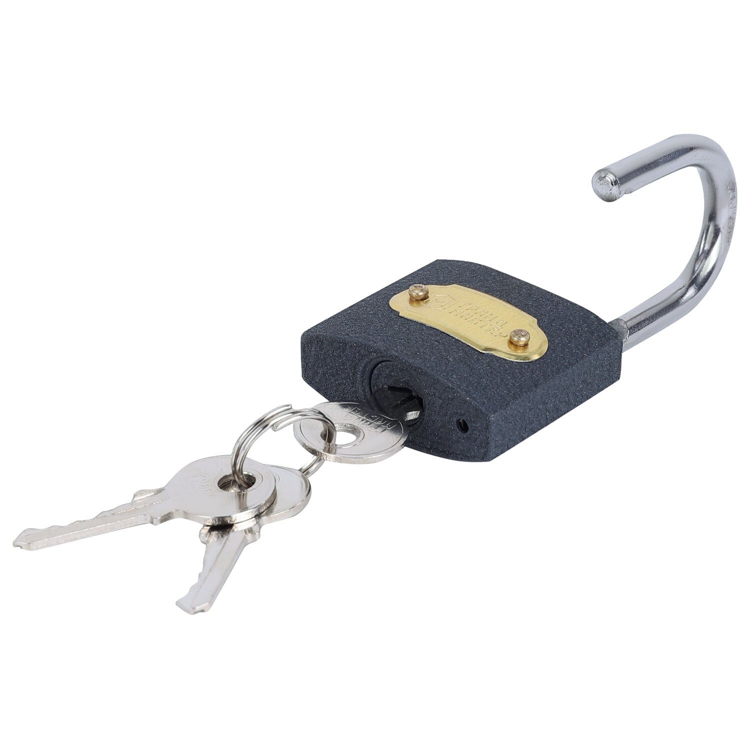 Замок навесной имеет литой чугунный корпус и оснащен полукруглой дужкой из закаленной стали, что делает его прочным и увеличивает сопротивляемость к взлому. Тип механизма секретности - цилиндровый. Три английских ключа в комплекте. Замок запирается автоматически (без использования ключа) при нажатии на дужку сверху, что облегчает его эксплуатацию. Небольшие размеры замка и толщина дужки позволяют использовать его в качестве замка для чемоданов, дорожных сумок, ящиков, шкафов, почтовых ящиков и распределительных щитков.