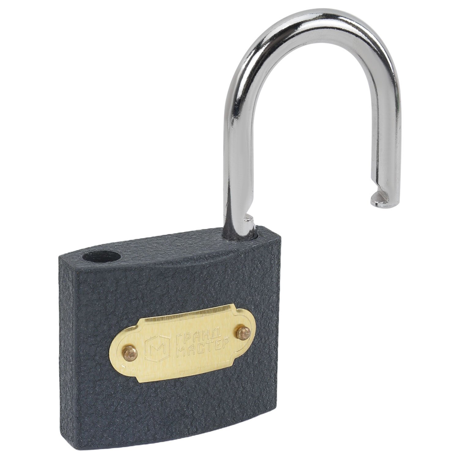 Замок навесной чугунный "Стандарт", ширина 38 мм, английский, 3 ключа, ГРАНДМАСТЕР, 671291