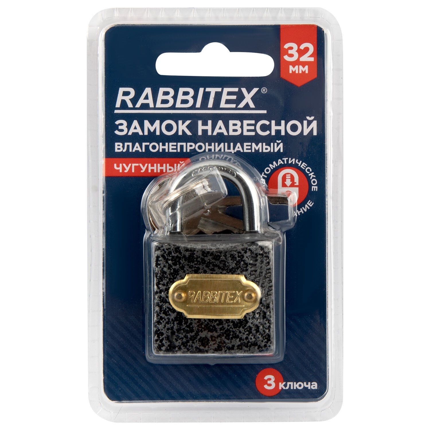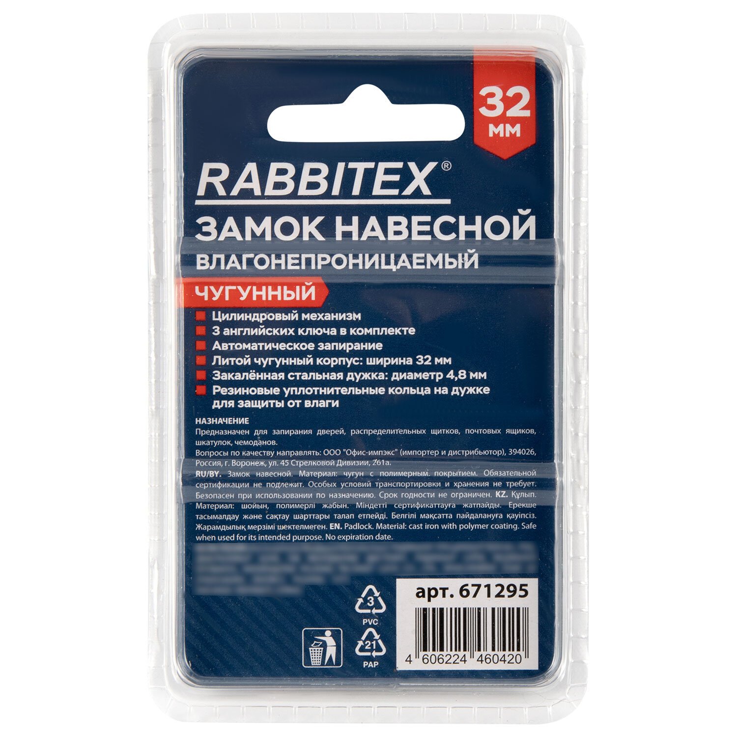 Замок навесной чугунный "Влагонепроницаемый", ширина 32 мм, полимерное покрытие, английский, 3 ключа, RABBITEX, 671295