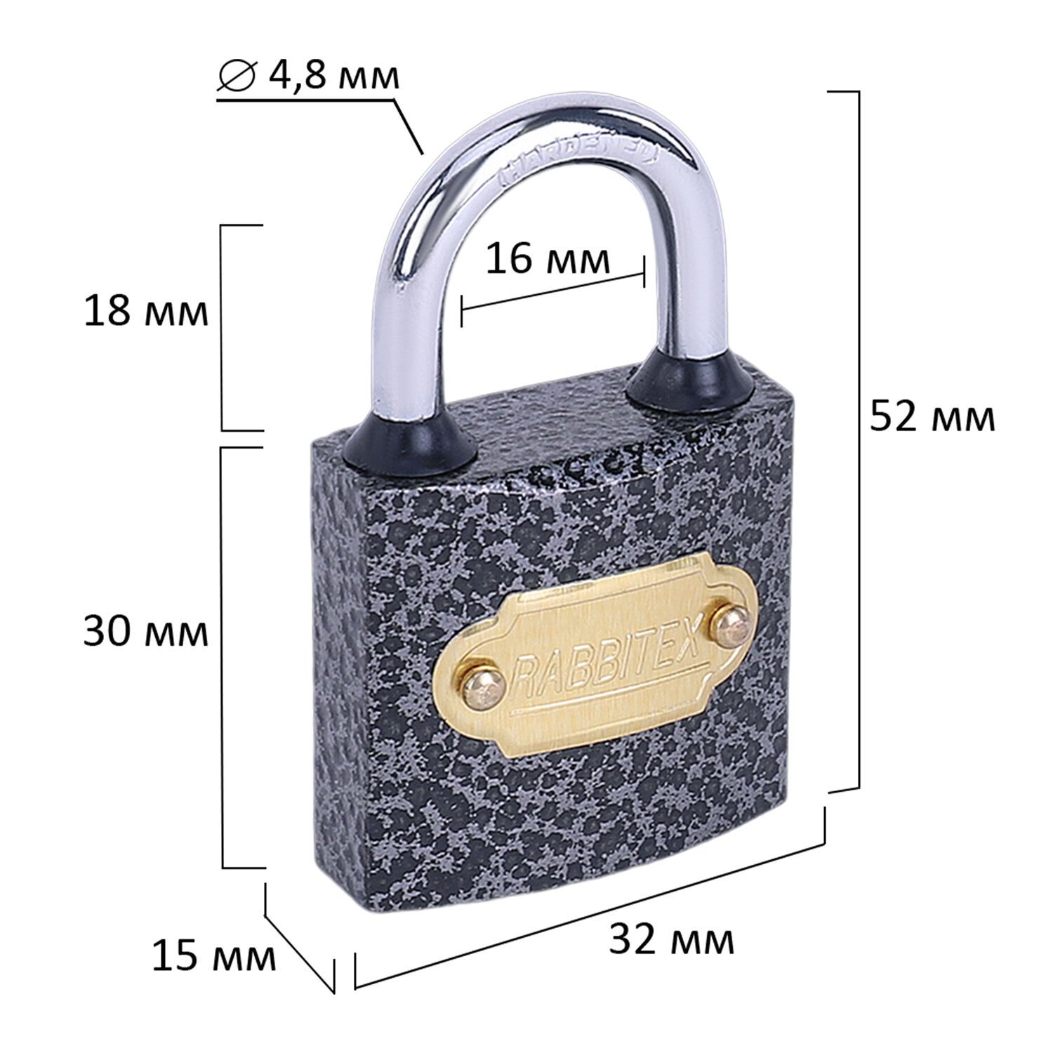 Замок навесной RABBITEX с цилиндровым механизмом секретности предназначен для запирания дверей, распределительных щитков, почтовых ящиков, шкатулок, чемоданов. Достаточно прост по конструкции и надёжен в повседневной эксплуатации.