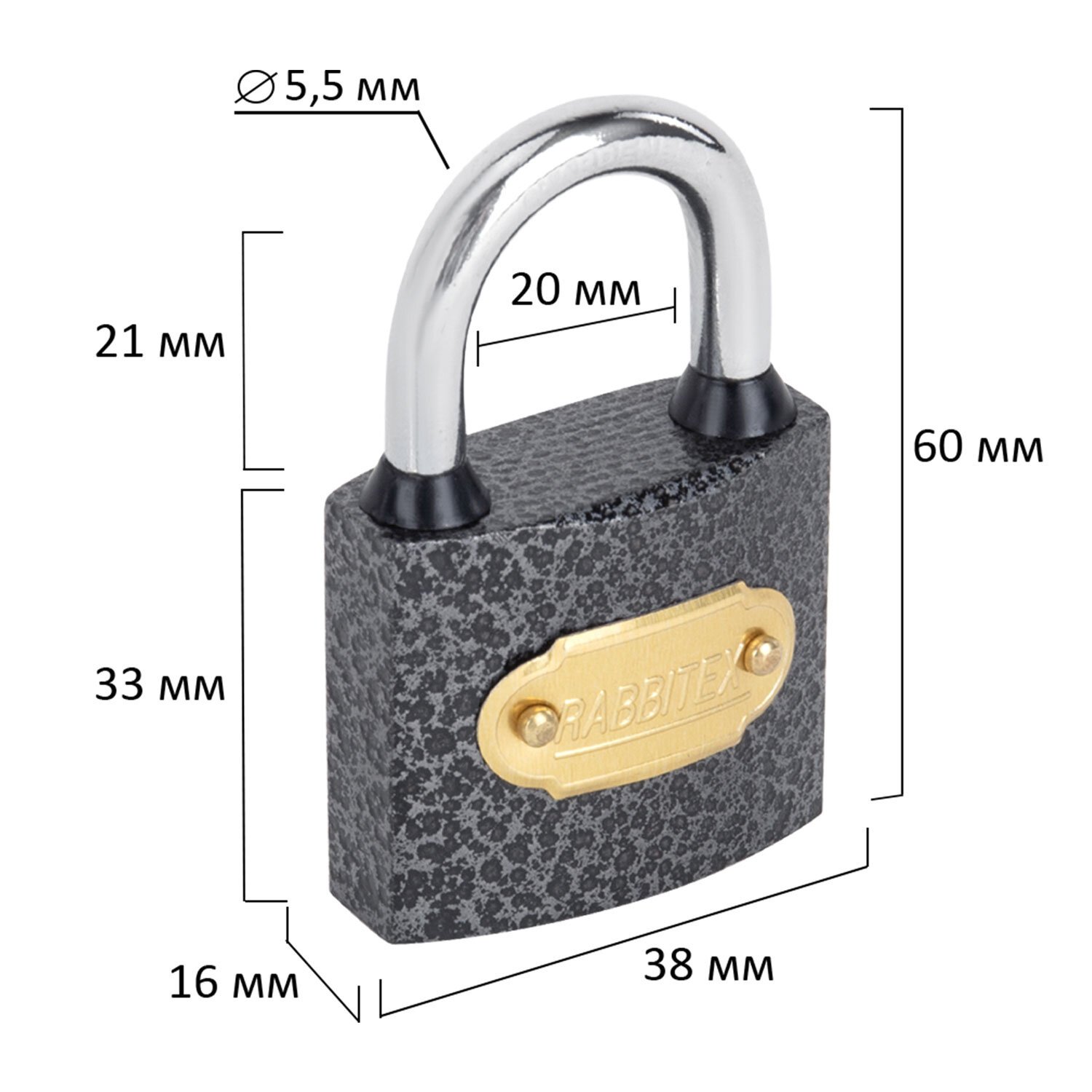 Размеры замка: ширина 38 мм, высота 60 мм, толщина 16 мм