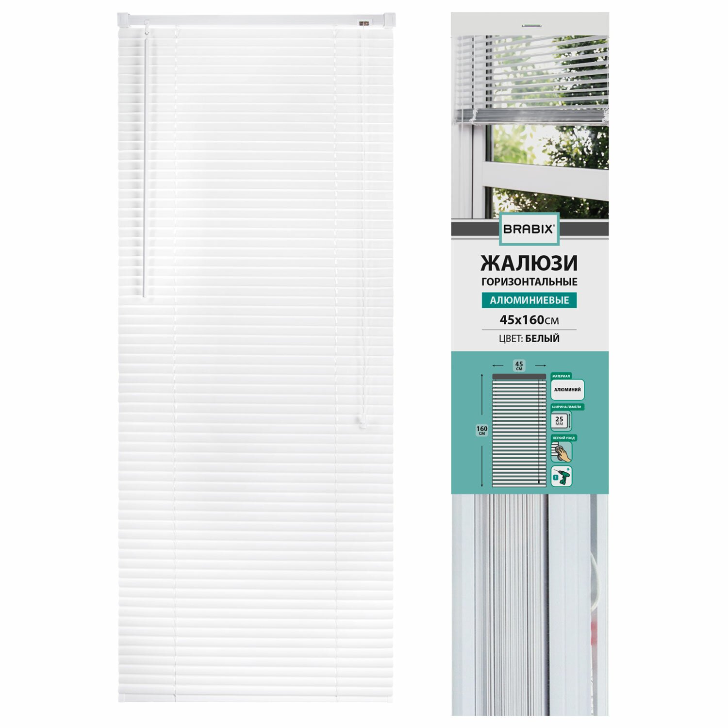 Жалюзи горизонтальные BRABIX 45х160 см, АЛЮМИНИЙ, цвет белый, 608623