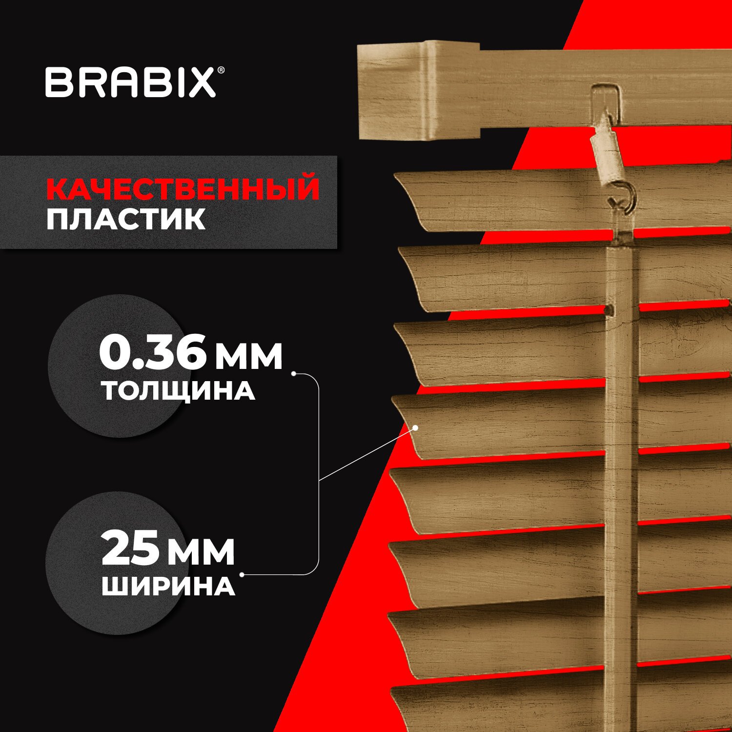 Жалюзи горизонтальные BRABIX 65х155 см, ПЛАСТИК, под дерево, бежевый, 608621