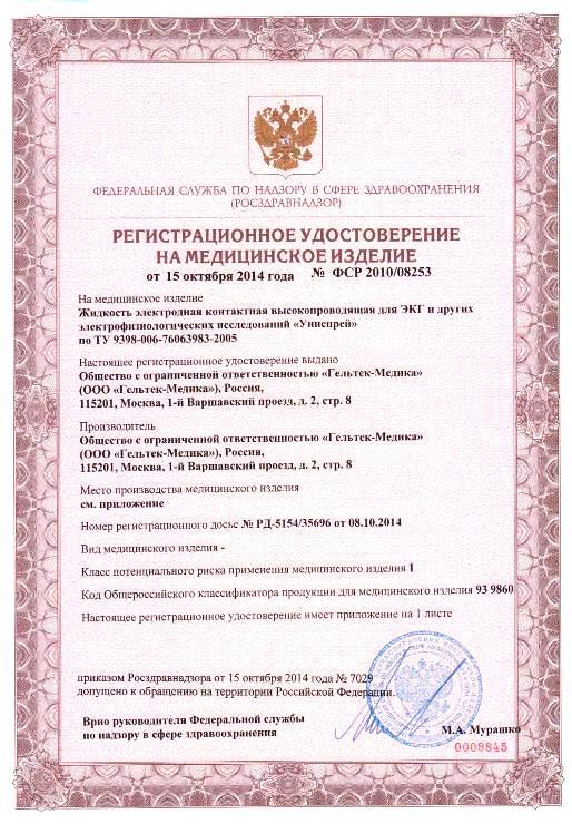 Жидкость электродная контактная с высокой электропроводностью для ЭКГ, дефибрилляции, электромиостимуляции, маммосканирования методом измерения электросопротивления тканей.