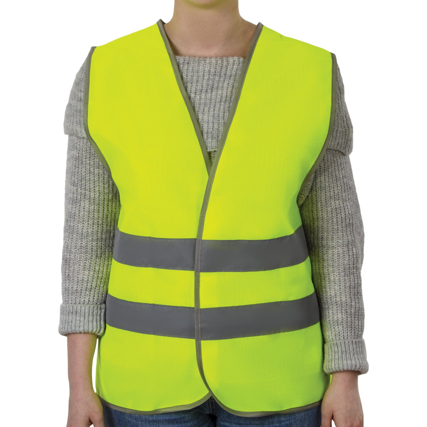 Сочетание неонового лимонного цвета и светоотражающих полос обеспечивает его заметность как днем, так и в темное время суток. Жилет с центральной застежкой на ленту-липучку надевается поверх другой одежды. Изделие соответствует первому классу защиты, изготовлено из 100% полиэстера плотностью 100 г/м2. Ширина светоотражающей ленты – 50 мм. Изделие полностью соответствует ГОСТ 31409-2009 и ГОСТ 31410-2009.