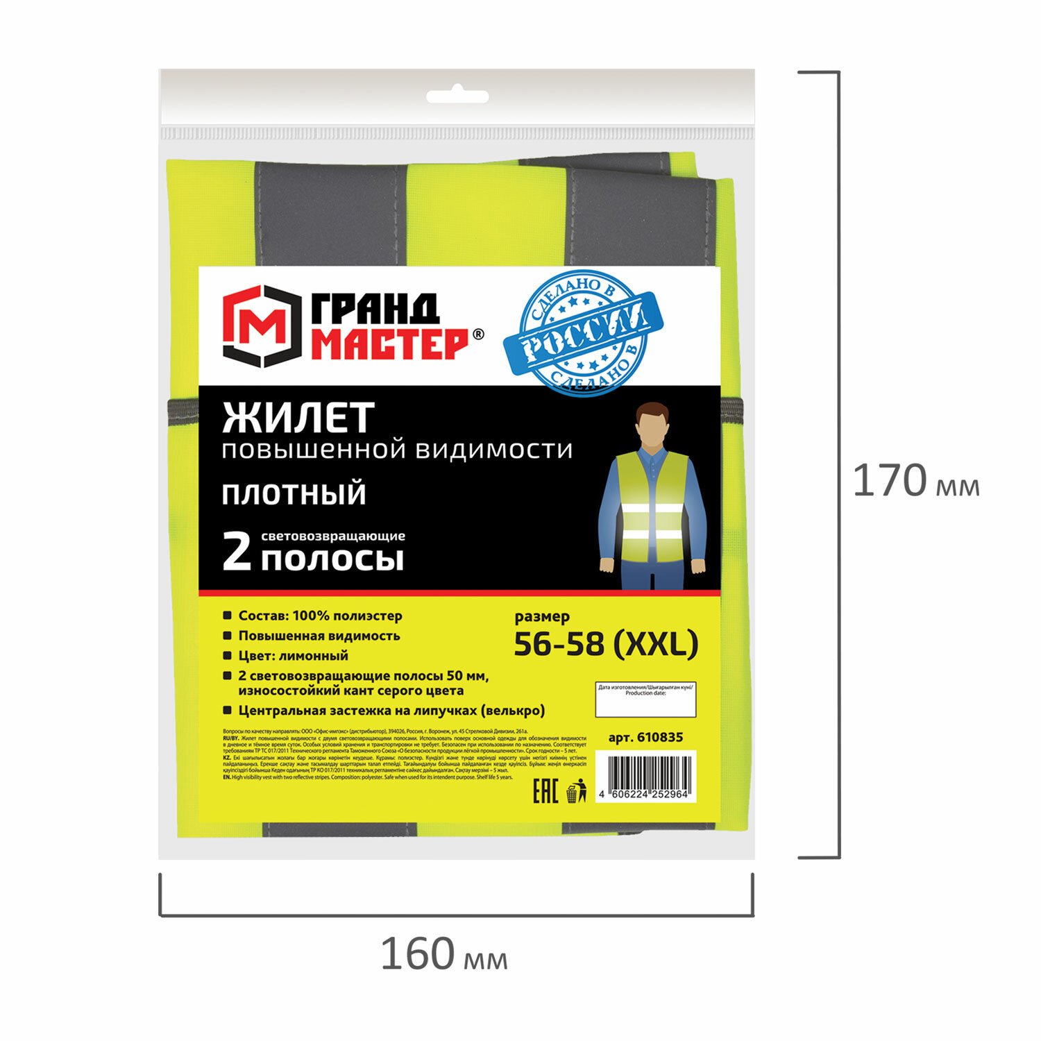 Жилет сигнальный ГОСТ, 2 светоотражающие полосы, ЛИМОННЫЙ, XXXL (60-62), ПЛОТНЫЙ, ГРАНДМАСТЕР, 610836