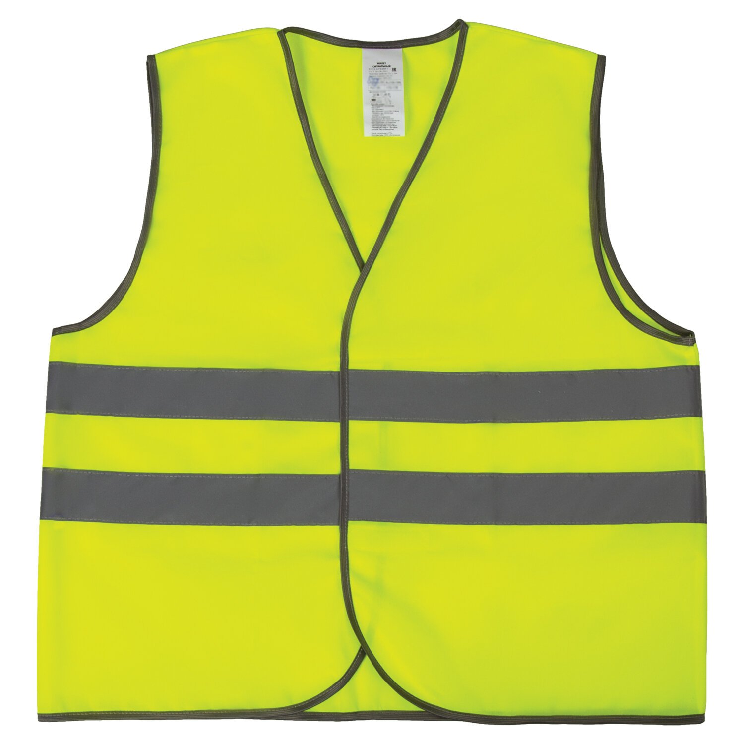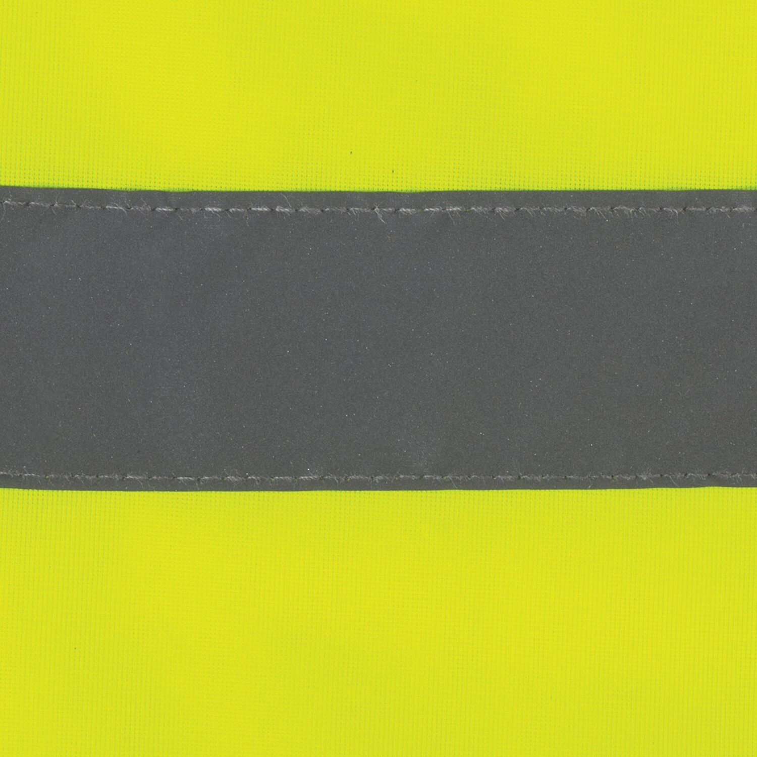 Сочетание неонового лимонного цвета и светоотражающих полос обеспечивает его заметность как днем, так и в темное время суток. Жилет с центральной застежкой на ленту-липучку надевается поверх другой одежды. Изделие соответствует второму классу защиты, изготовлено из 100% полиэстера плотностью 120 г/м2. Ширина светоотражающей ленты – 50 мм.