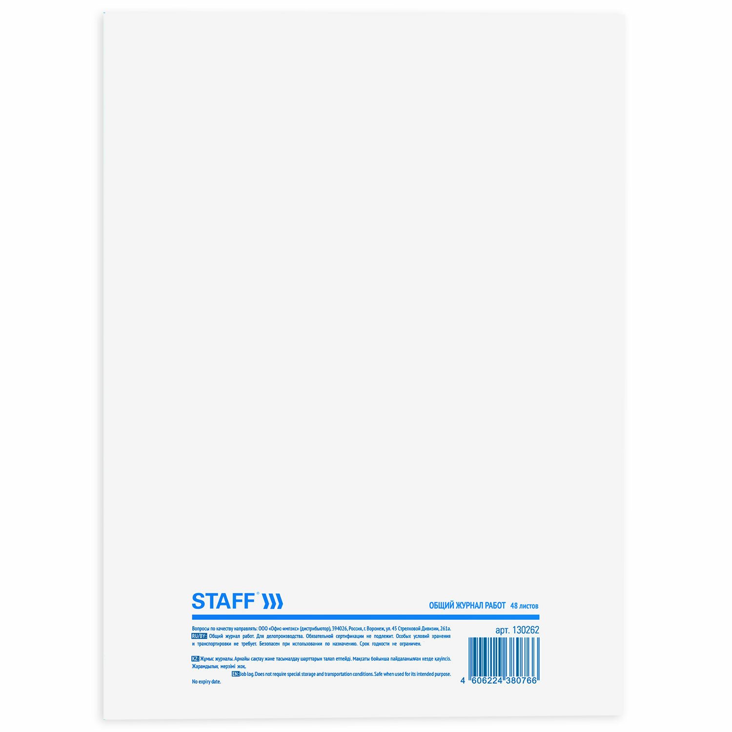 Журнал работ общий, 48 л., картон, офсет, А4 (200х292 мм), STAFF, 130262