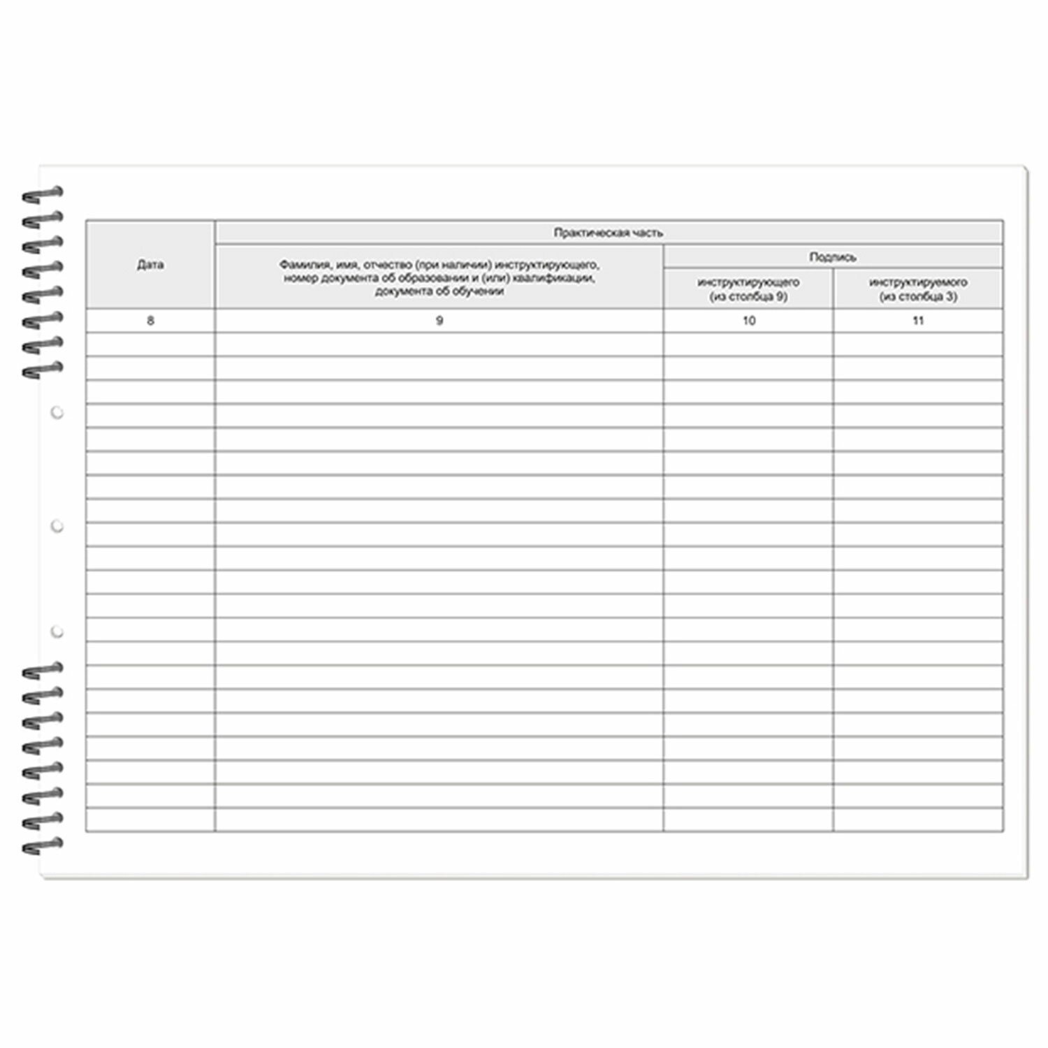Внутренний блок имеет линовку, специально разработанную для регистрации инструктажей по пожарной безопасности. Имеет специальную прошивку под печать для опломбирования.