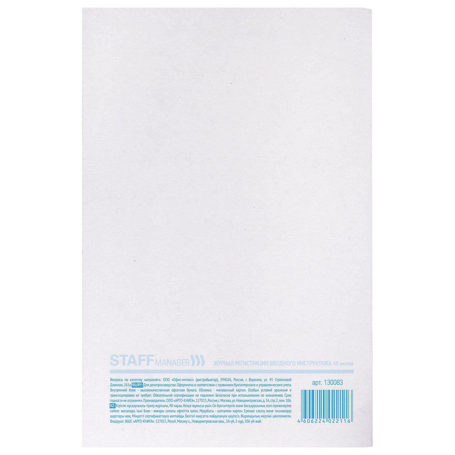 Журнал регистрации вводного инструктажа, 48 л., картон, офсет, А4 (200х290 мм), STAFF, 130083
