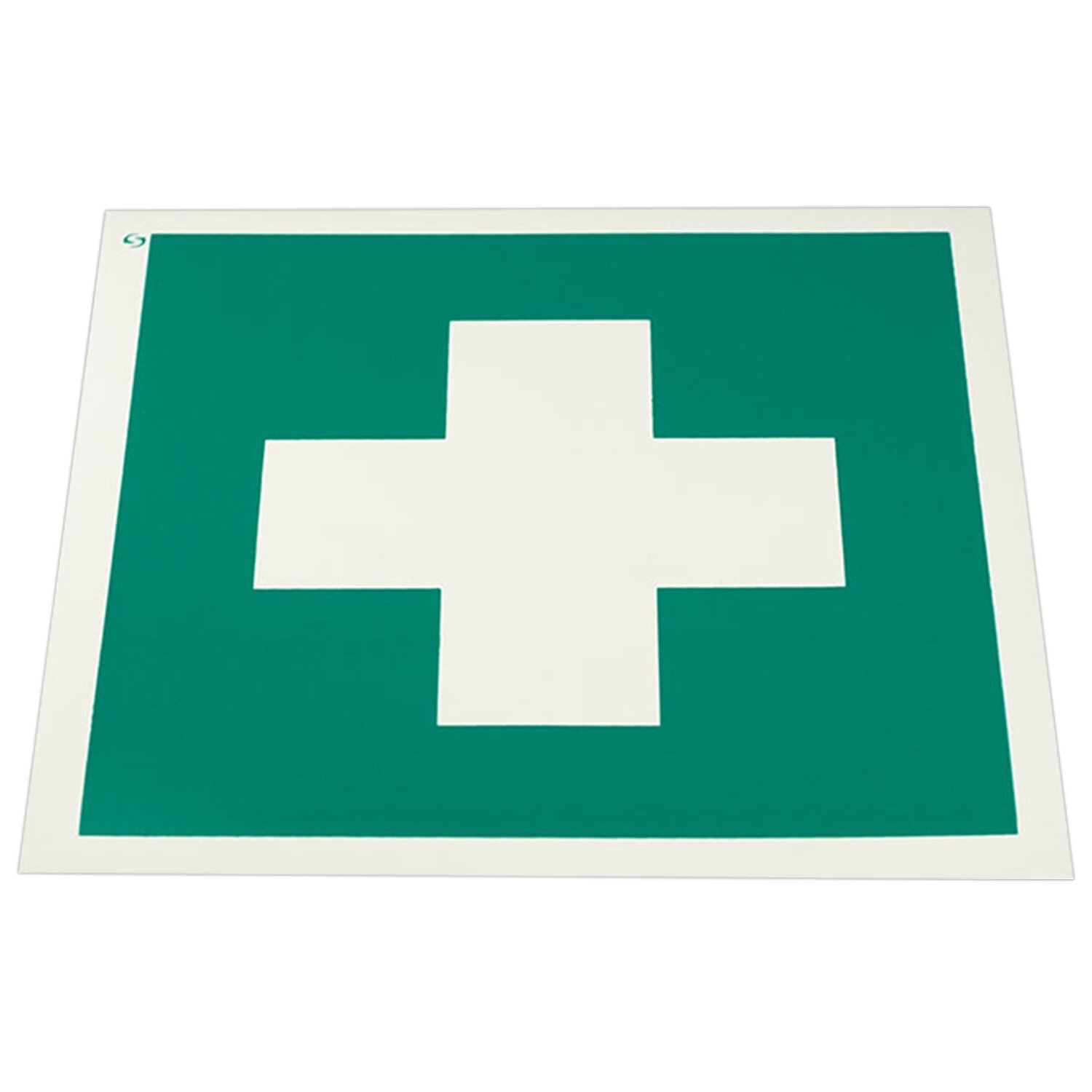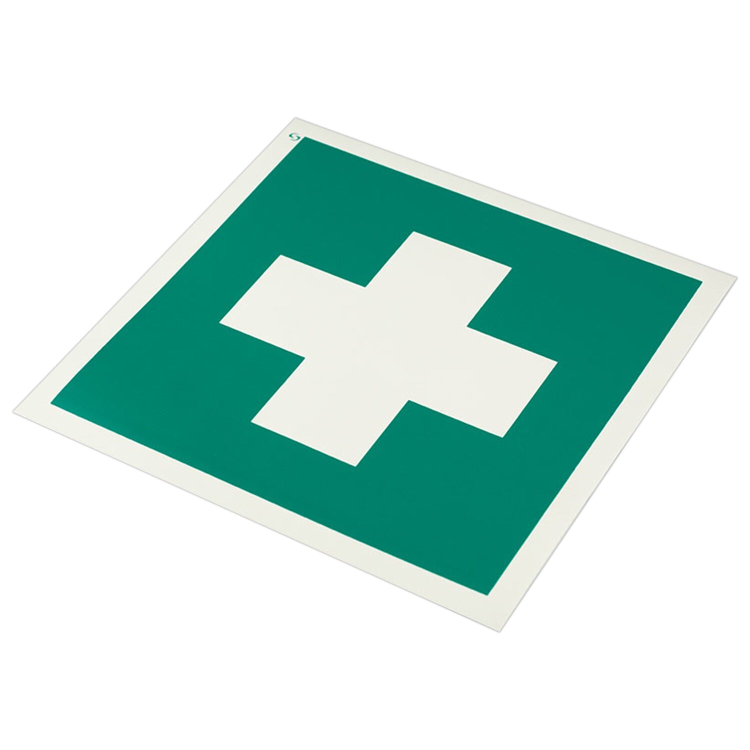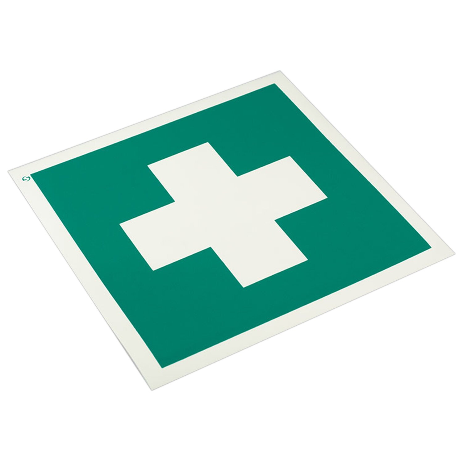 Знак "Аптечка первой медицинской помощи" формата 200*200мм изготовлен на самоклеющейся пленке, в комплекте 5 шт.