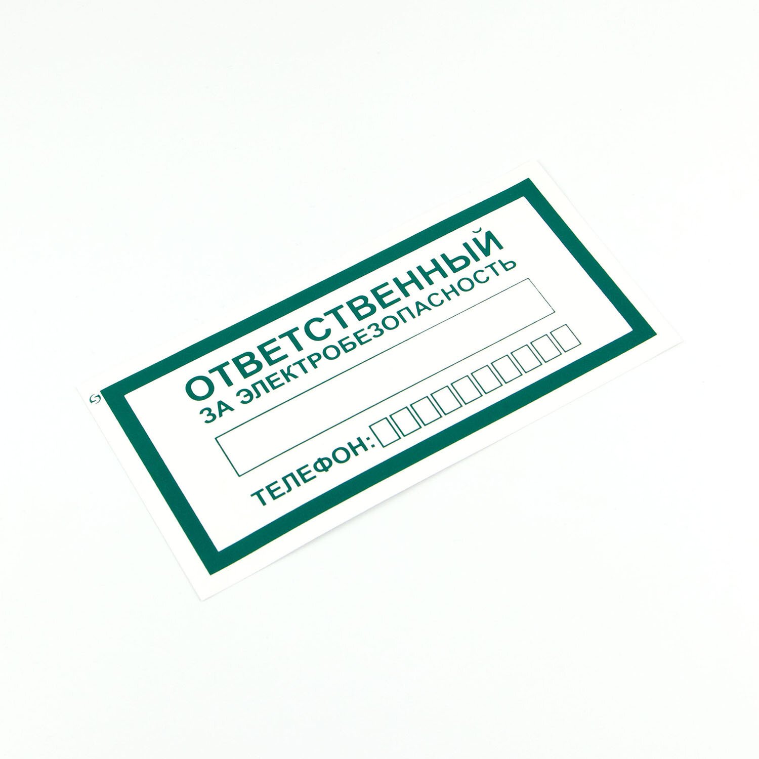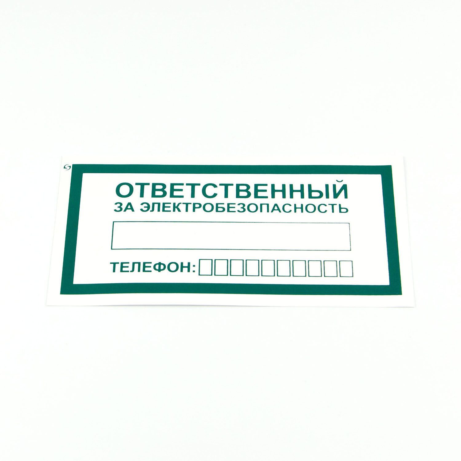 Знак служит для указания ответственного за электробезопасность в помещении и его контактного телефона. Устанавливают непосредственно в помещении, размещается на дверях помещений, в которых размещено потенциально опасное электрическое оборудование.