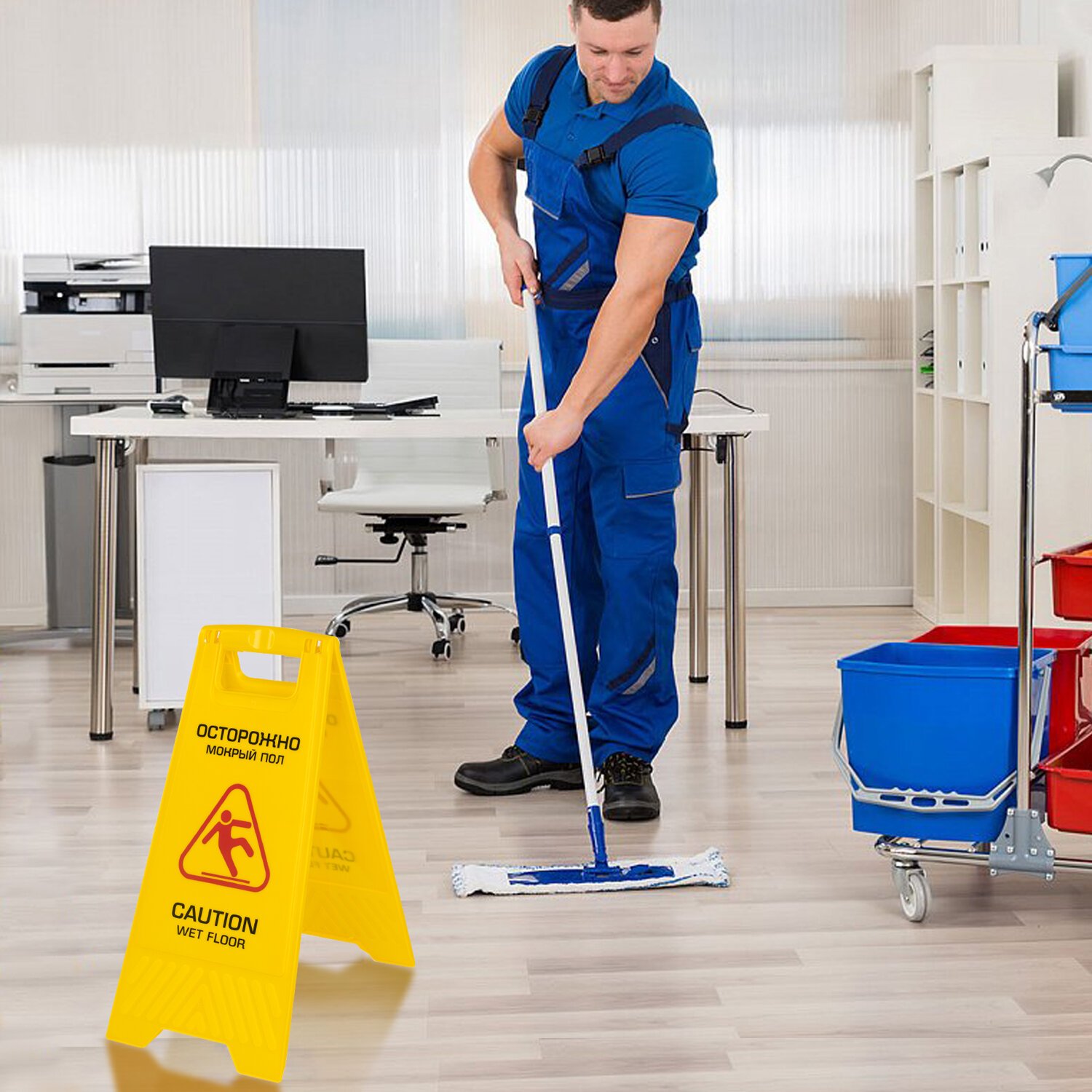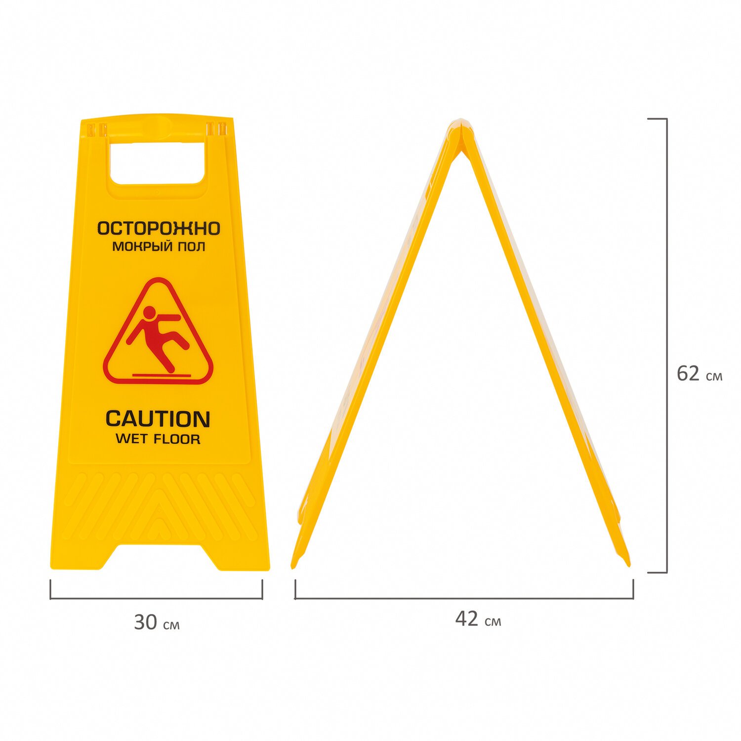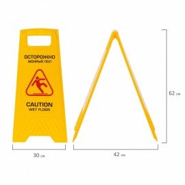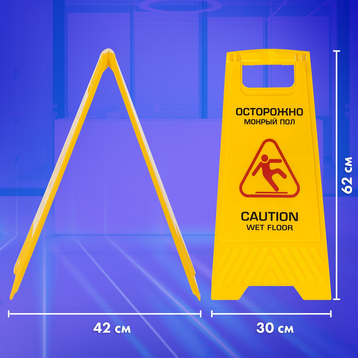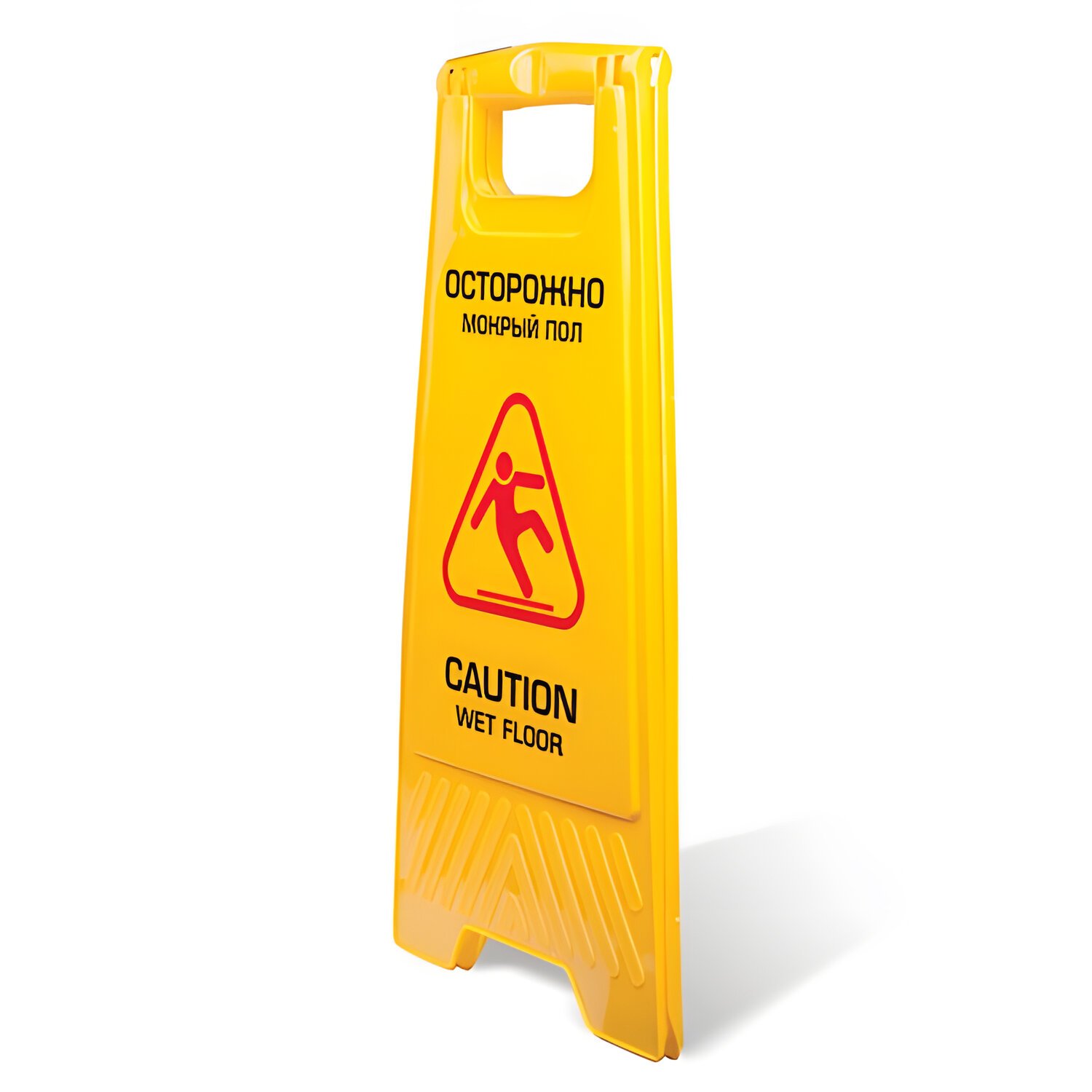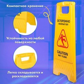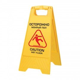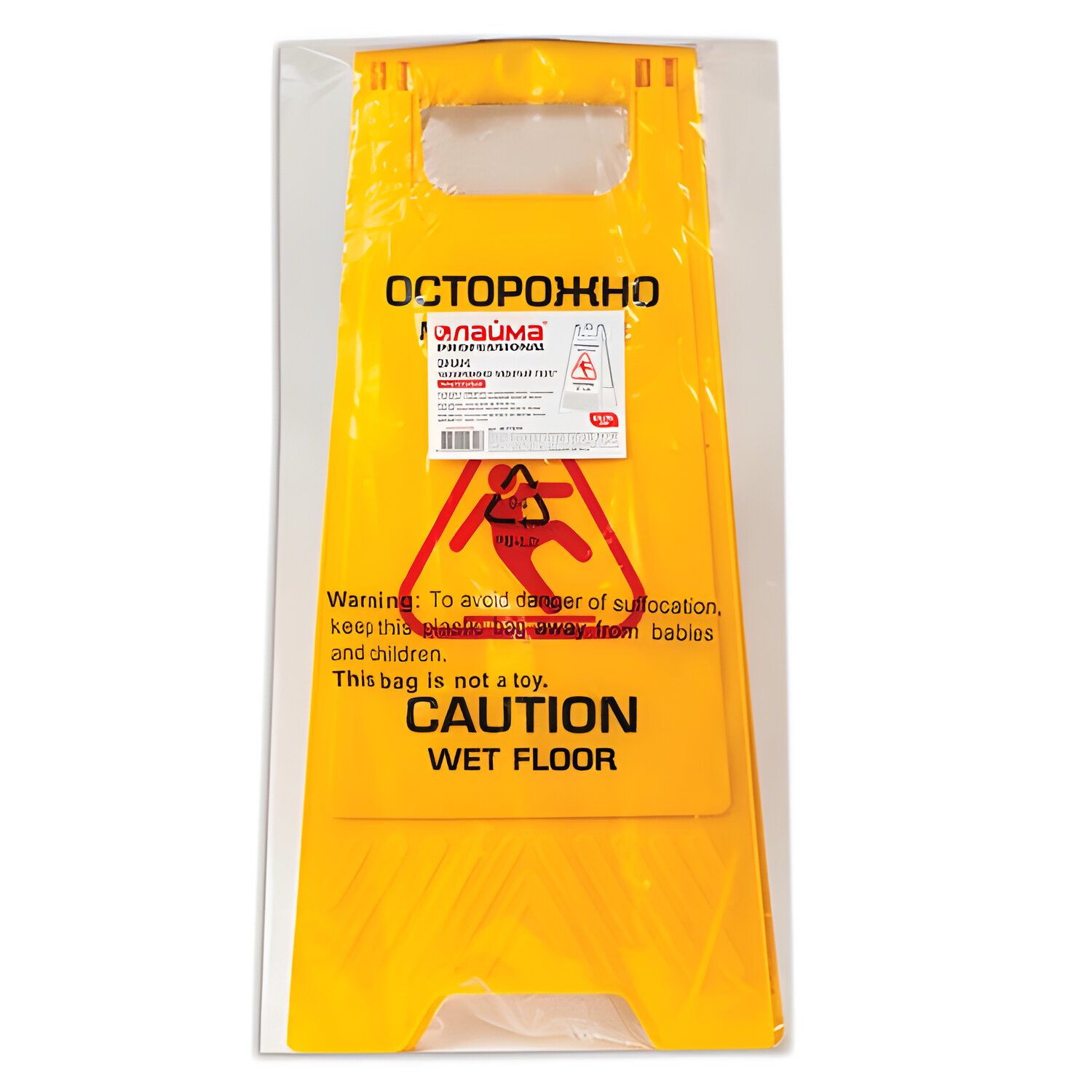 Знак "Осторожно! Мокрый пол!" LAIMA PROFESSIONALпредназначен для привлечения внимания и обеспечения безопасности в местах массового скопления людей. Выставляется при проведении влажной уборки.