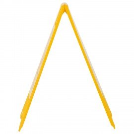 Он выполнен из ударопрочного пластика, легко складывается и раскладывается. В сложенном виде имеет размер 62х30 см. Информация написана на русском и английском языках. Яркий желтый цвет позволяет увидеть знак на большом расстоянии.