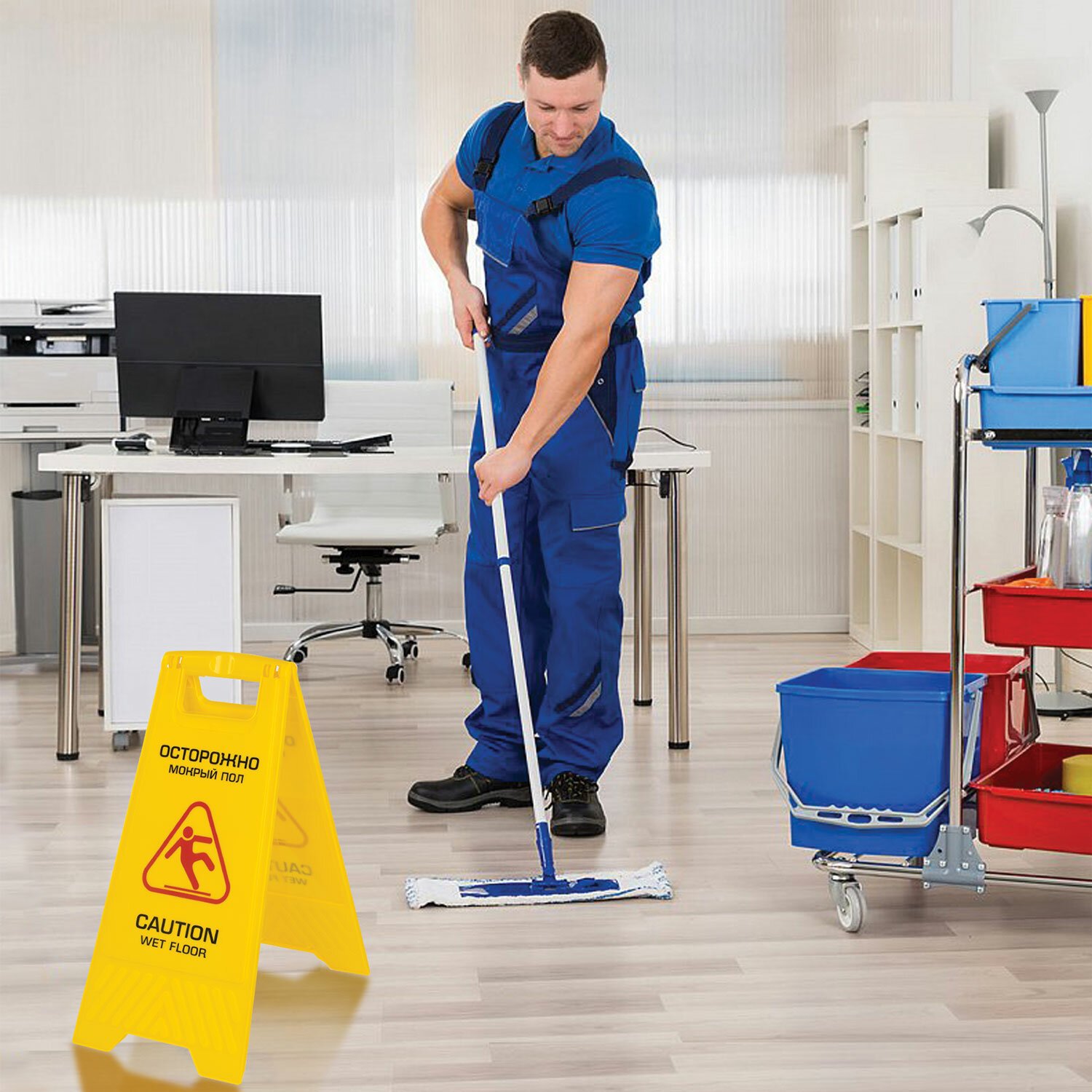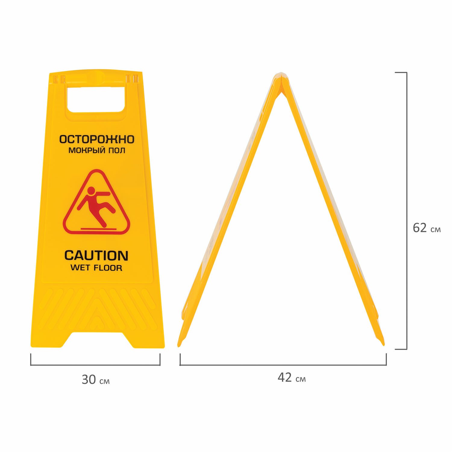 Знак "Осторожно! Мокрый пол!" LAIMA PROFESSIONAL предназначен для привлечения внимания и обеспечения безопасности в местах массового скопления людей. Выставляется во время проведении влажной уборки.