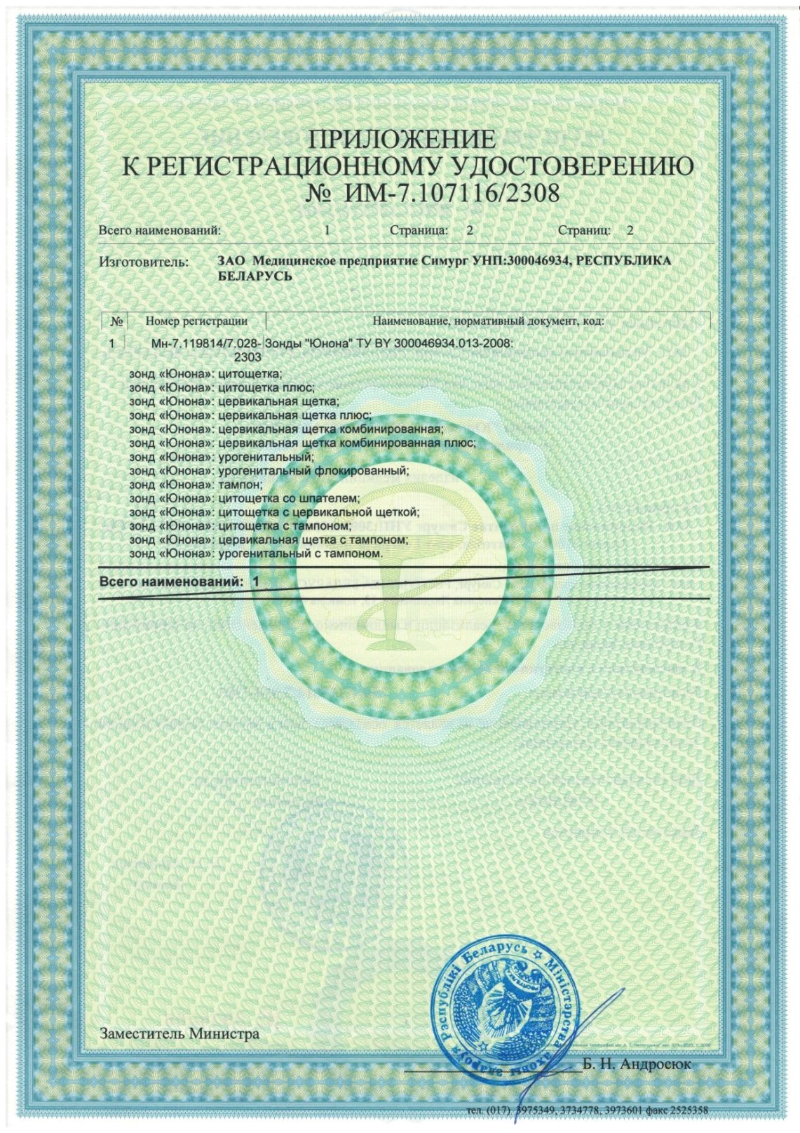 Зонд урогенитальный тип D-1 (цитощетка+) стерильный, КОМПЛЕКТ 100 шт., ЮНОНА