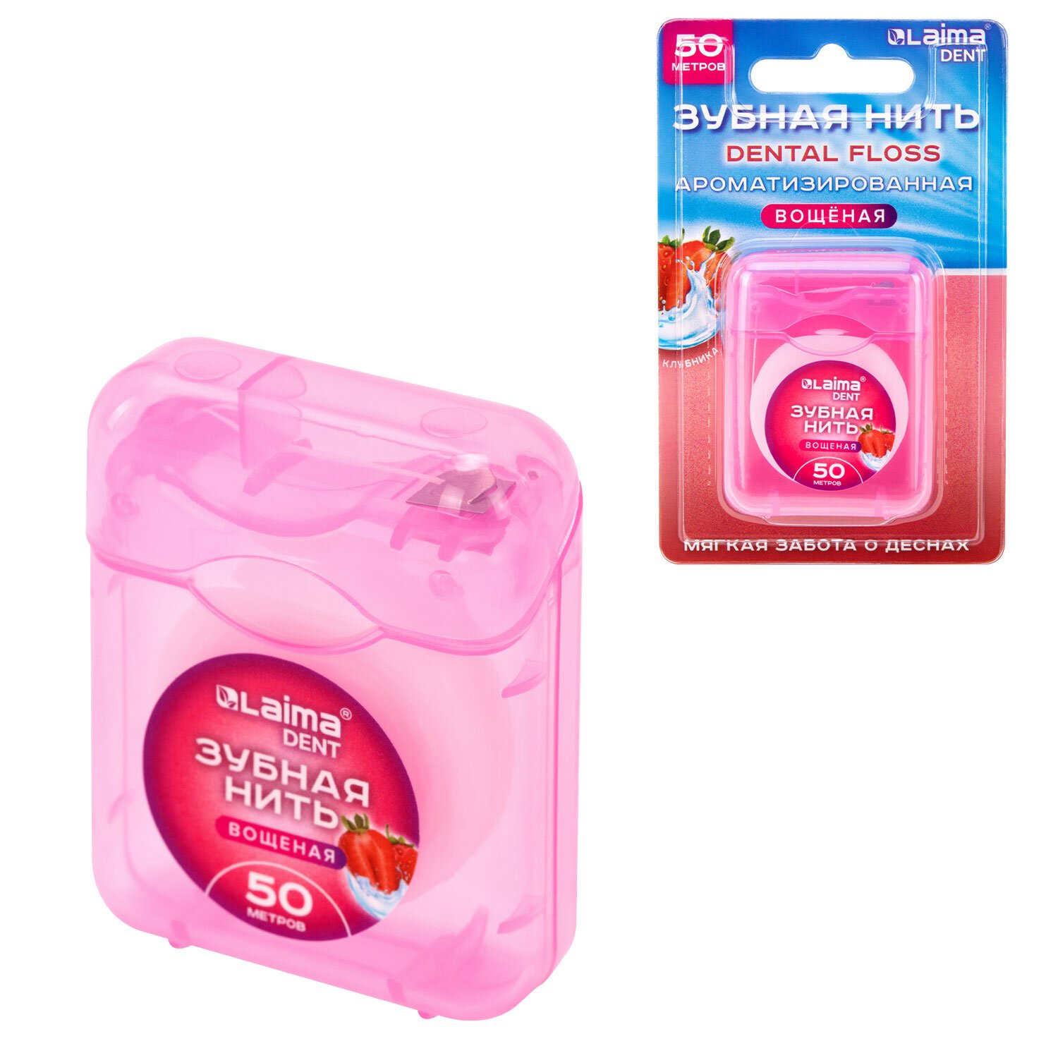 Зубная нить вощеная 50м, мягкая забота о деснах, ВКУС КЛУБНИКИ, LAIMA DENT, 609415