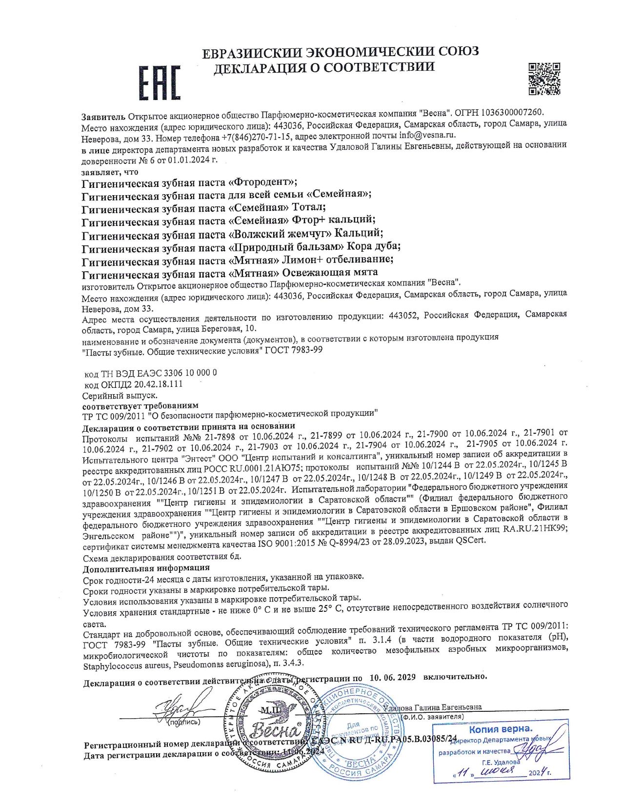 Зубная паста 90 г СЕМЕЙНАЯ (Весна) "Классическая", отбеливающая, защита от кариеса, 8096