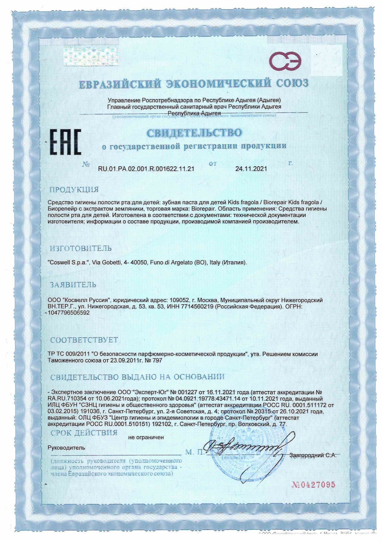 Зубная паста детская 50 мл BIOREPAIR "Земляника", ИТАЛИЯ, GA1730500