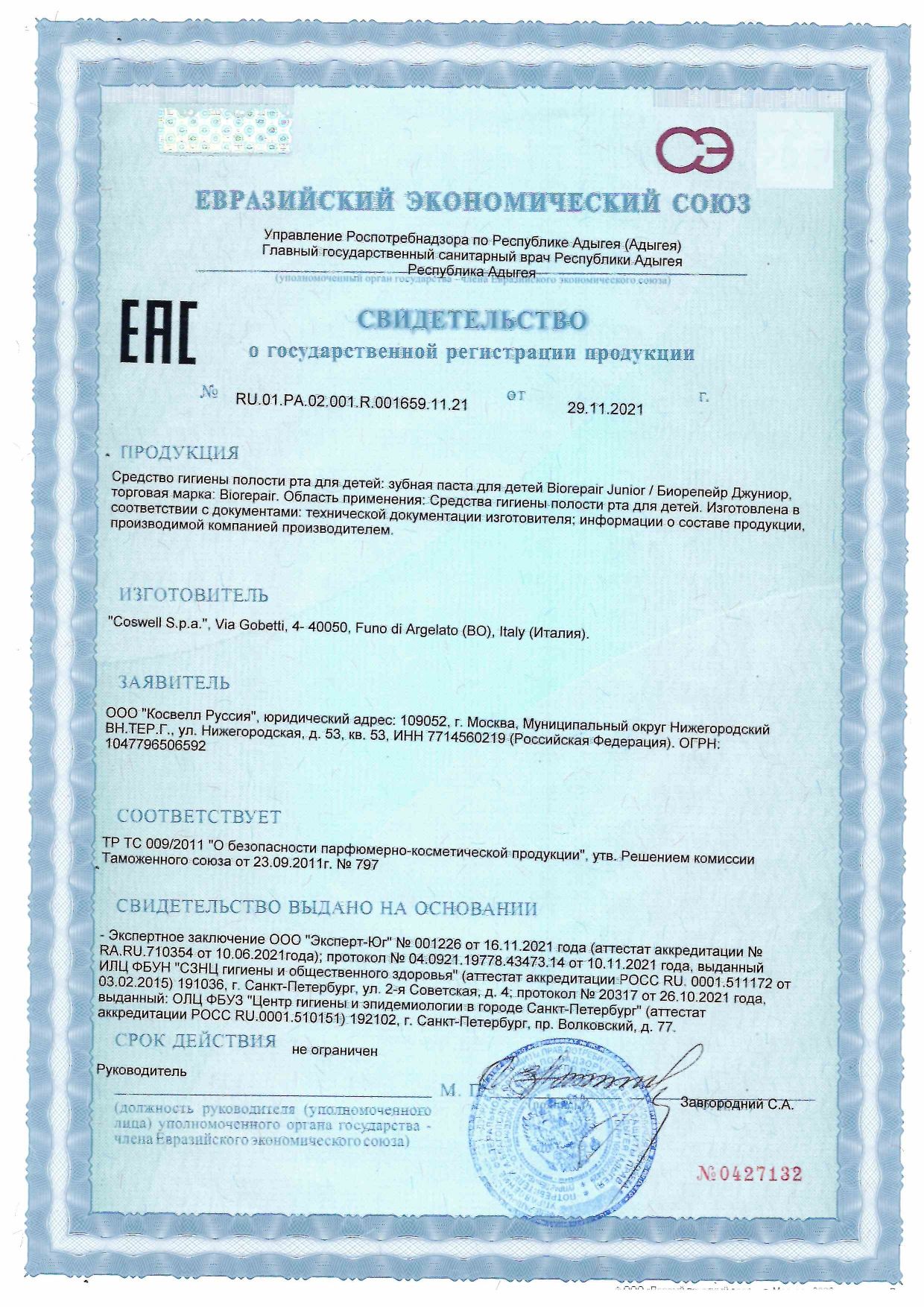 Зубная паста детская 50 мл BIOREPAIR "Виноград", ИТАЛИЯ, GA1730300