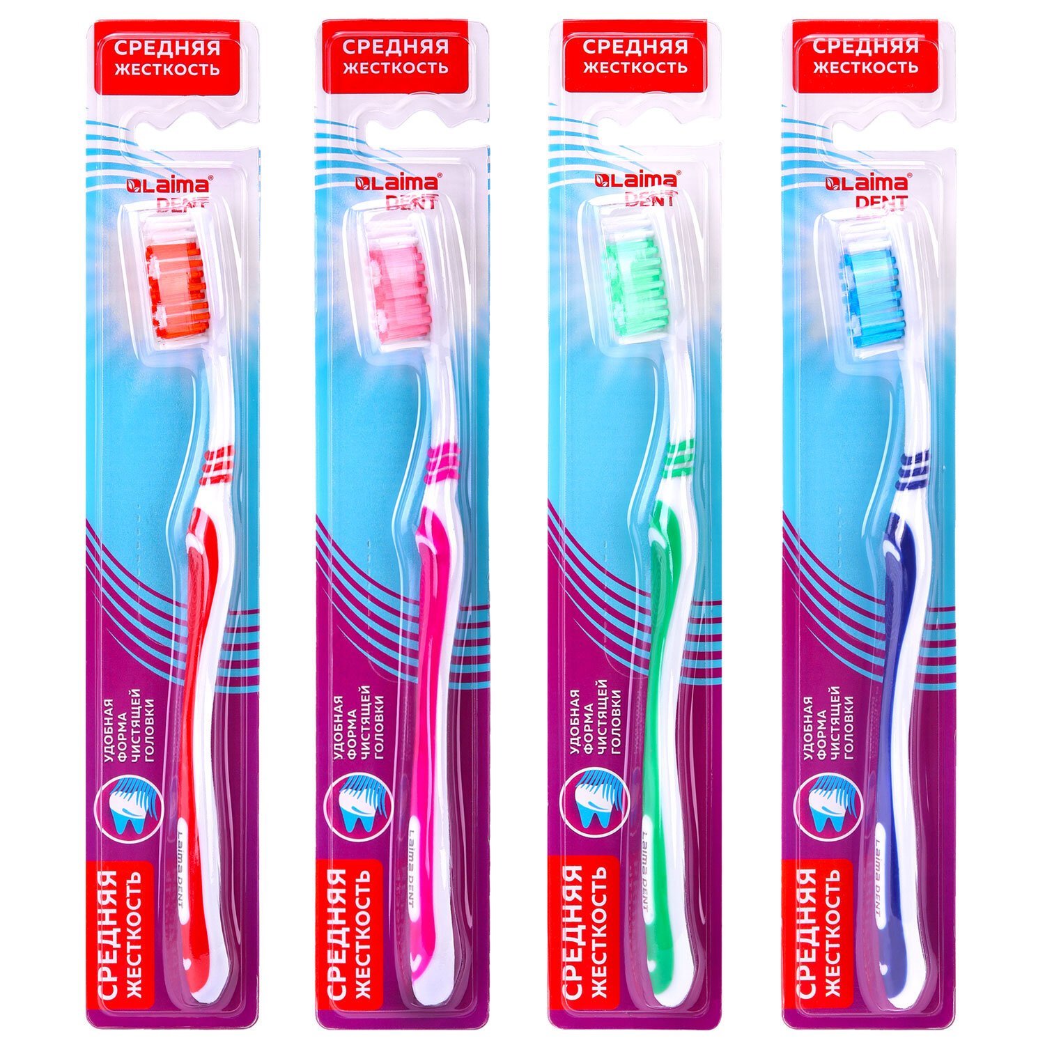 Зубная щетка средней жесткости (ассорти 4 цвета), LAIMA DENT, 609310