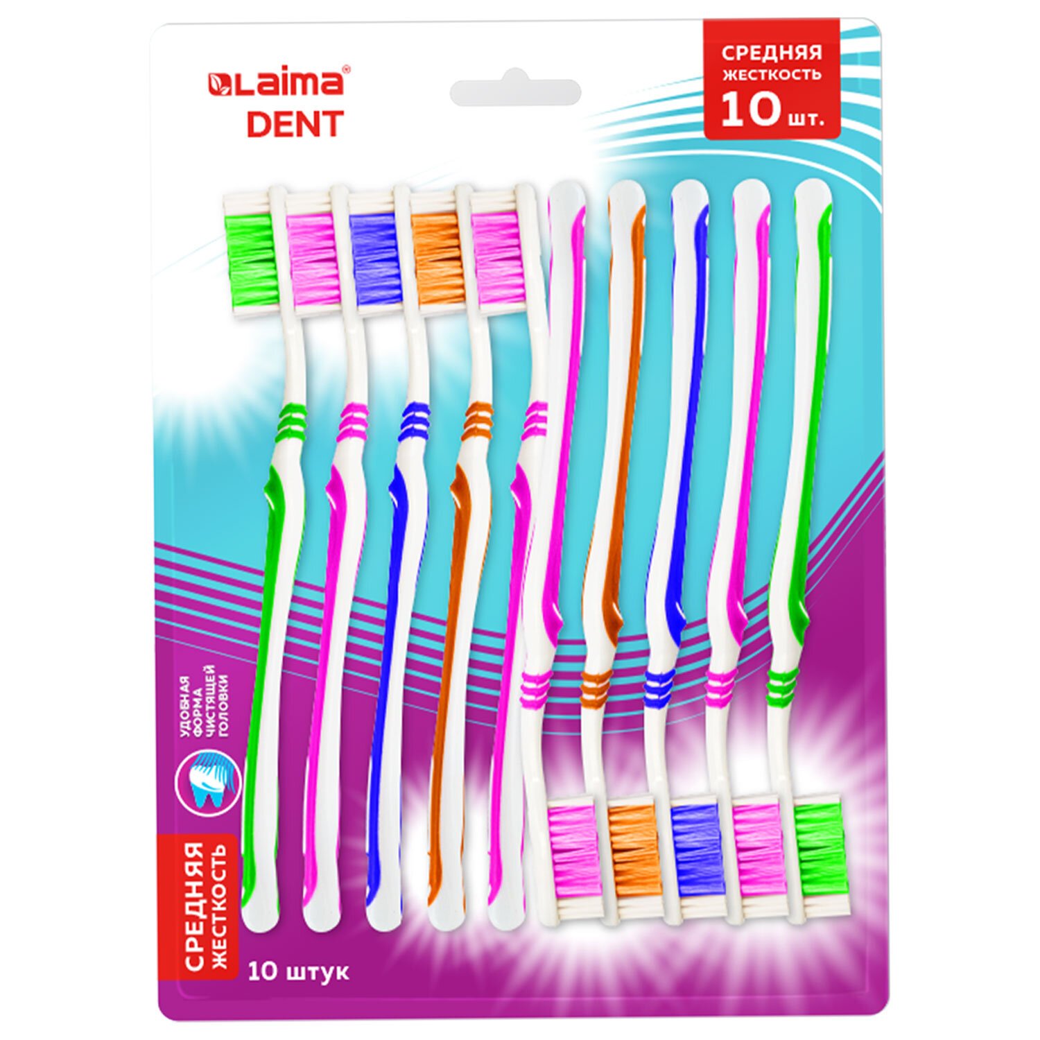 Зубная щетка средней жесткости, КОМПЛЕКТ 10 шт, LAIMA DENT, 609311