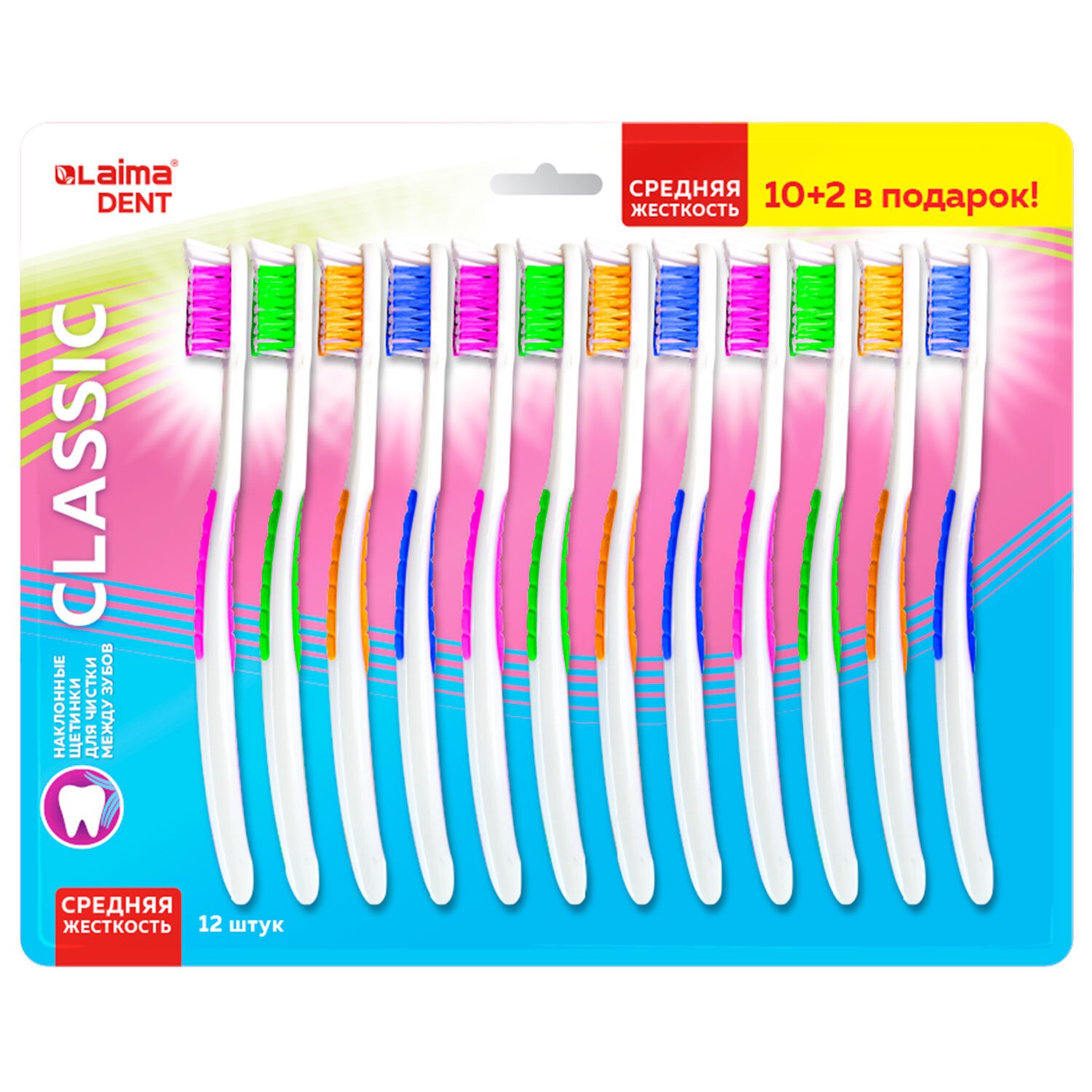 Зубная щетка средней жесткости, КОМПЛЕКТ 12шт (10 + 2 в подарок), LAIMA DENT "CLASSIC", 609693