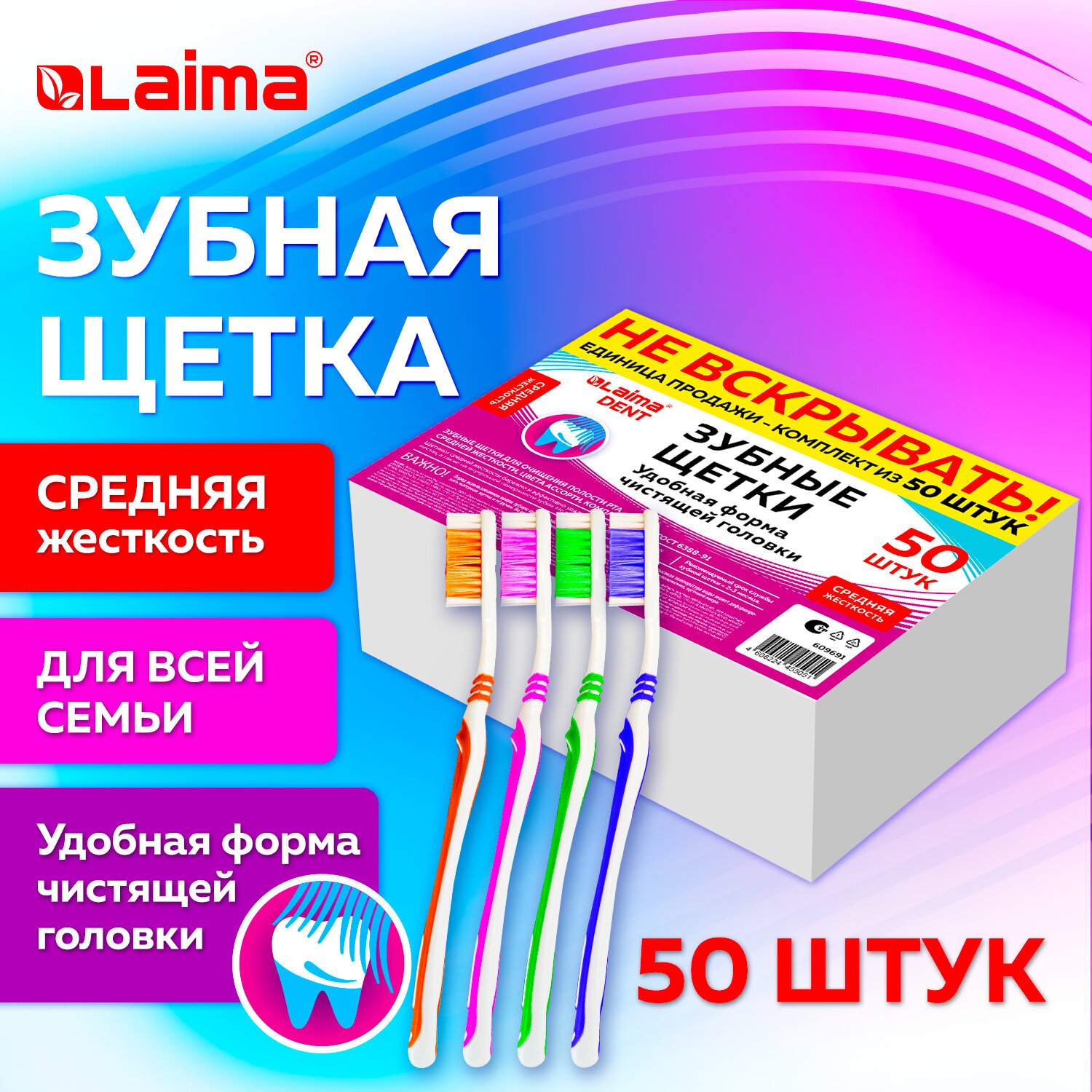 Зубная щетка средней жесткости, КОМПЛЕКТ 50шт, LAIMA DENT, 609691