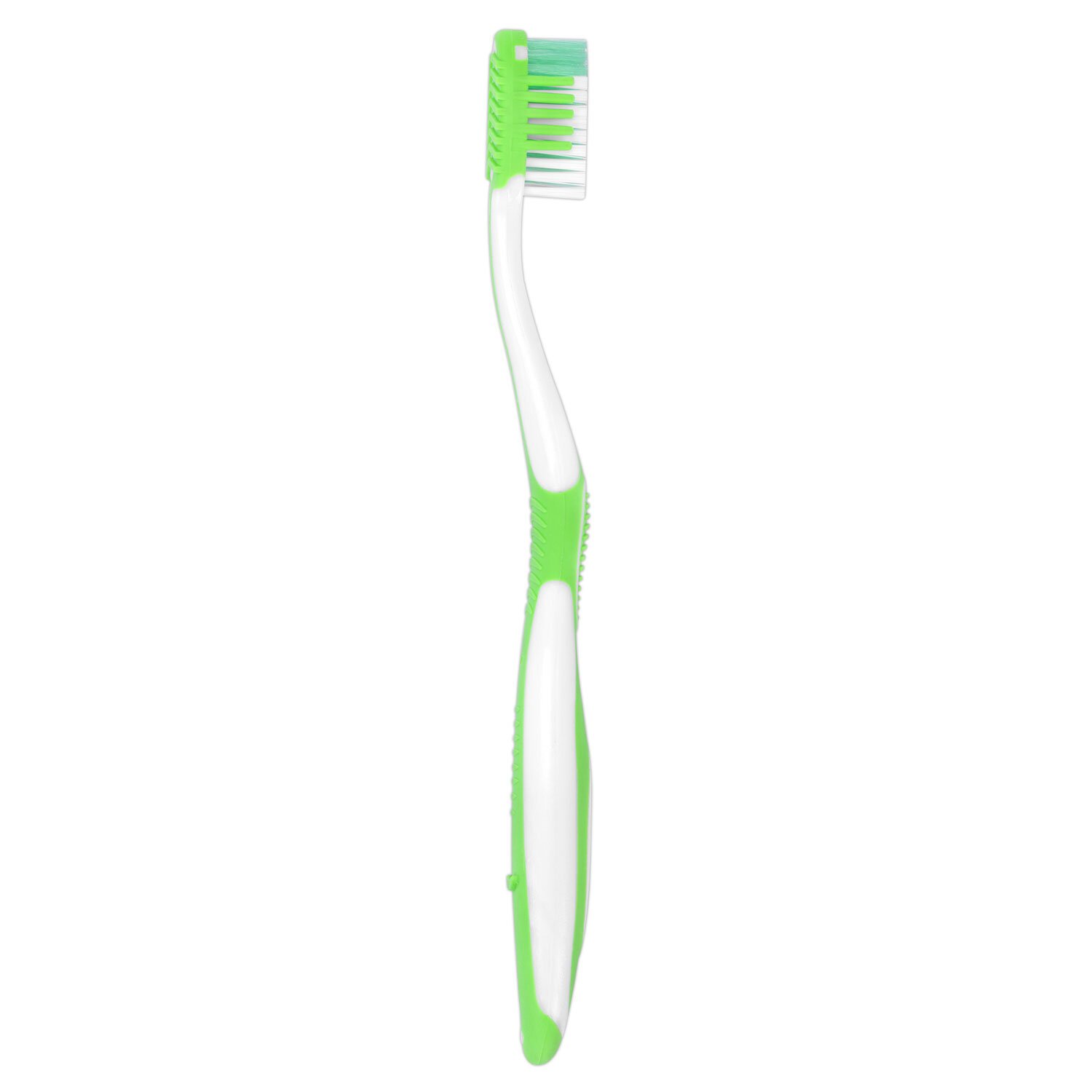 Зубная щетка LAIMA — идеальный выбор для всей семьи, обеспечивающий качественную гигиену полости рта. Щетина средней жесткости обеспечивает максимальное очищение, щетинки эффективно удаляют налет и бактерии, предотвращая кариес и зубной камень. Компактная головка щетки легко проникает в труднодоступные места, а массажные вставки обеспечивают бережный массаж дёсен и их защиту. Удобная ручка для комфортного захвата.