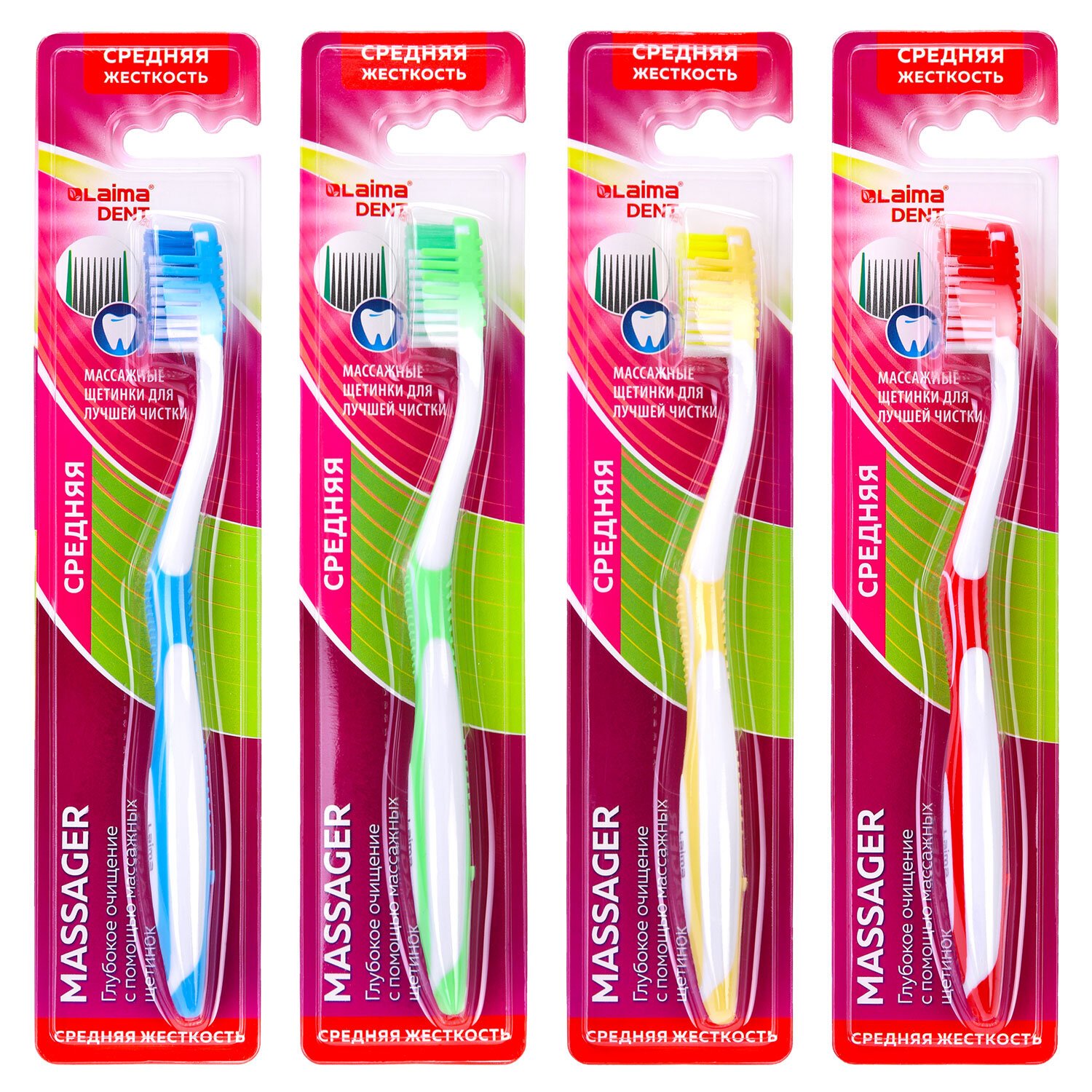 Зубная щетка средней жесткости, LAIMA DENT, "MASSAGER", с массажными щетинками, 609318