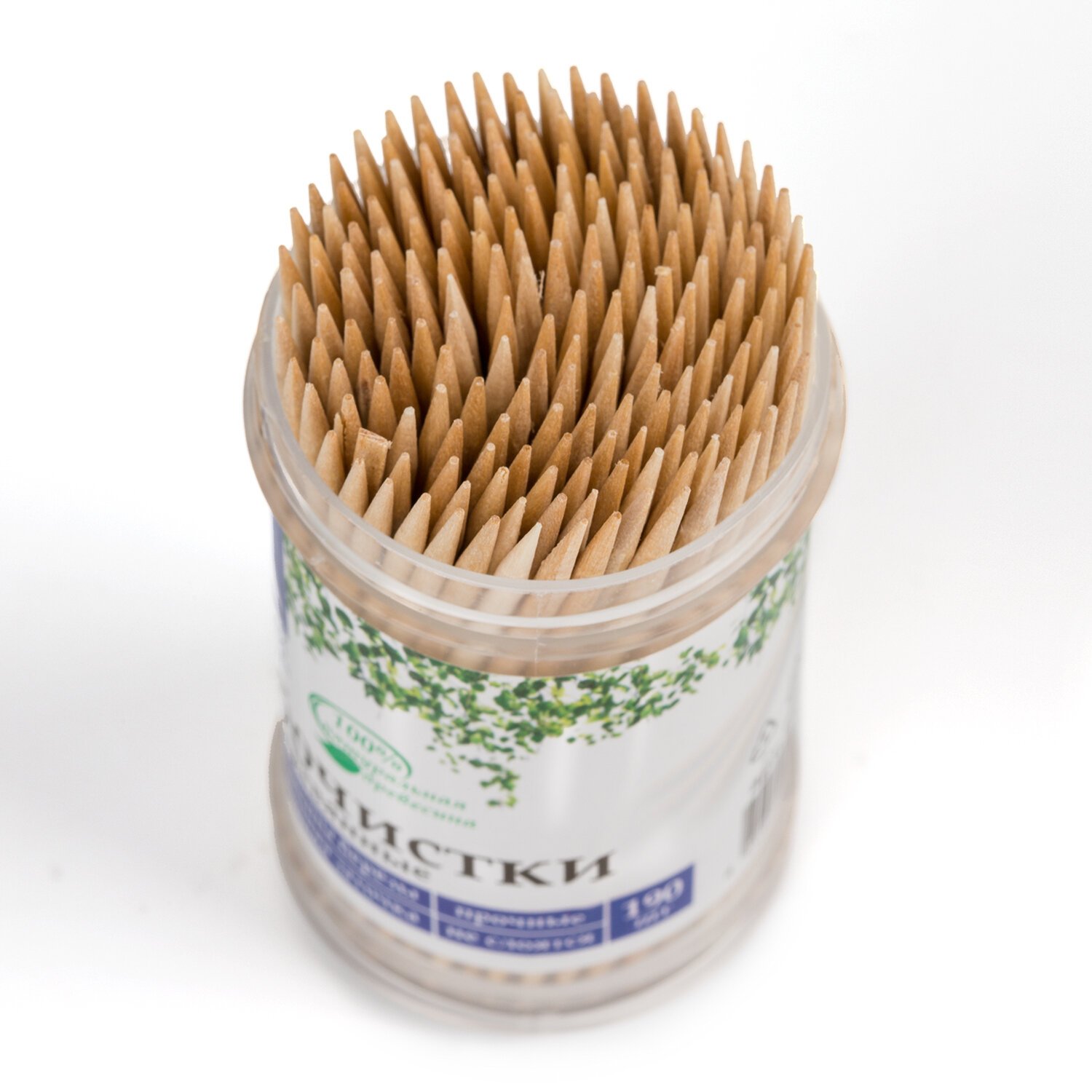Выполнены из древесины березы. Зубочистки имеют двустороннюю заточку, не слоятся и не ломаются, что делает их безопасными для зубной эмали. Подходят для ухода за полостью рта в течение всего дня. Зубочистки не содержат красителей и вредных пропиток. Прекрасно подходят дня приготовления канапе из фруктов, овощей, сыра, морепродуктов и мясных изделий. В пластиковой упаковке содержится 190 зубочисток длиной 65 мм.