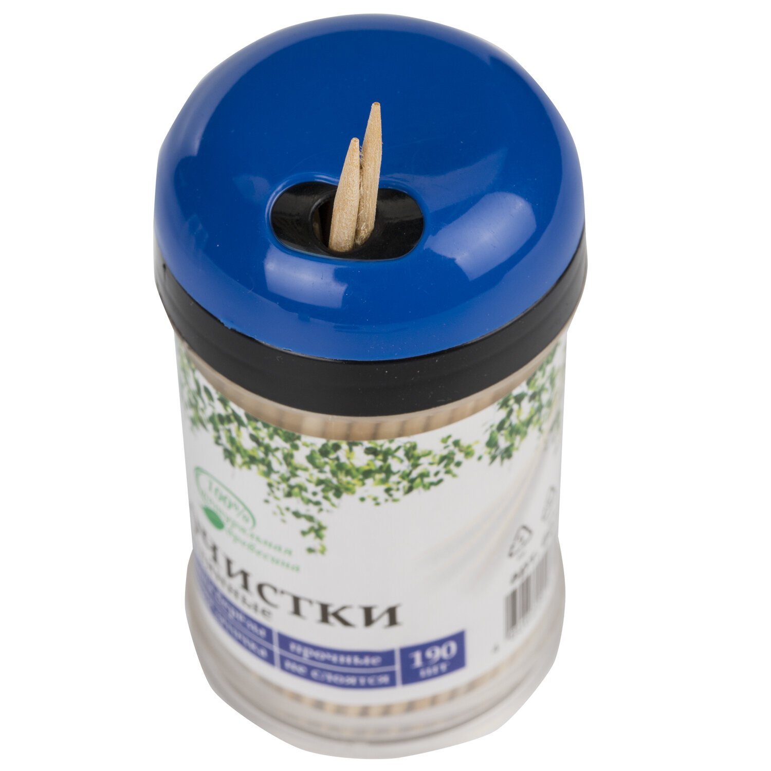 Зубочистки деревянные 190 штук в диспенсере с крышкой, БЕЛЫЙ АИСТ, берёза, 607566